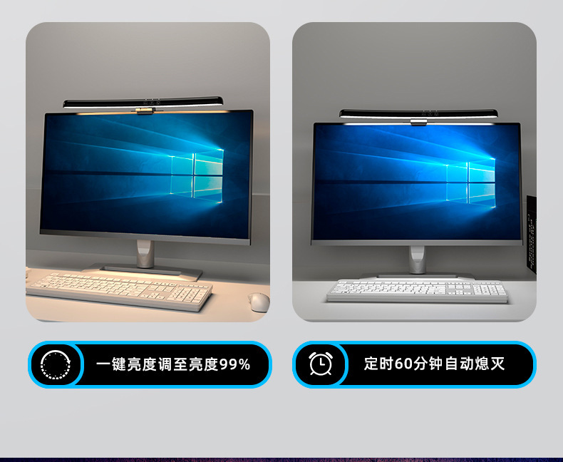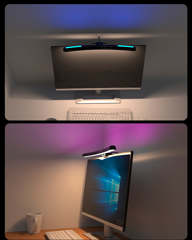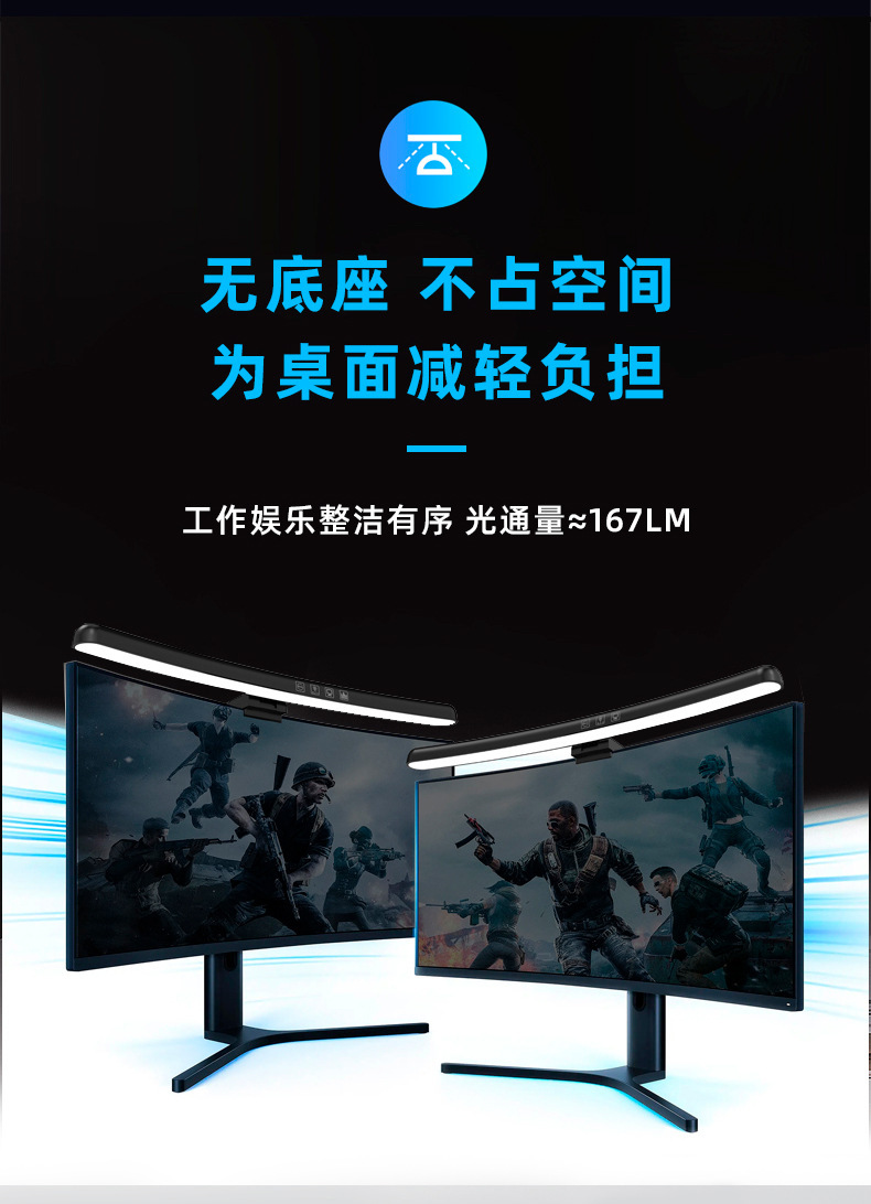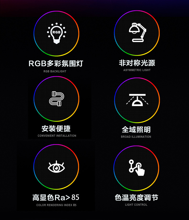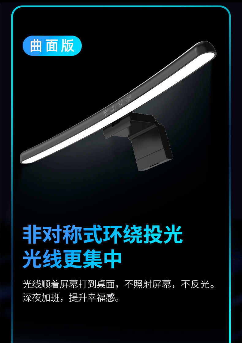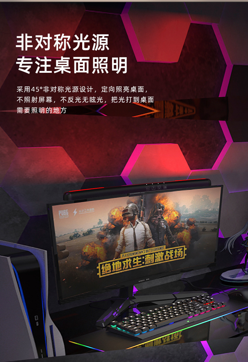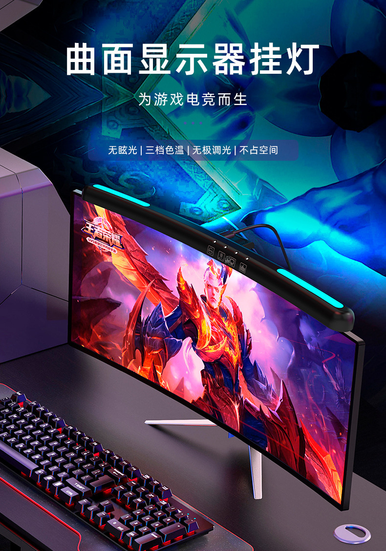 带七彩氛围灯非对称护眼显示器电脑灯桌面补光曲面屏屏幕挂灯