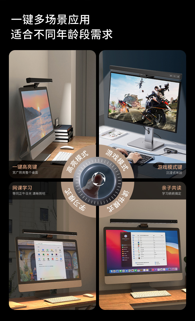 铝合金屏幕灯手扫人体感应智能非对称全光谱显示器高亮台灯
