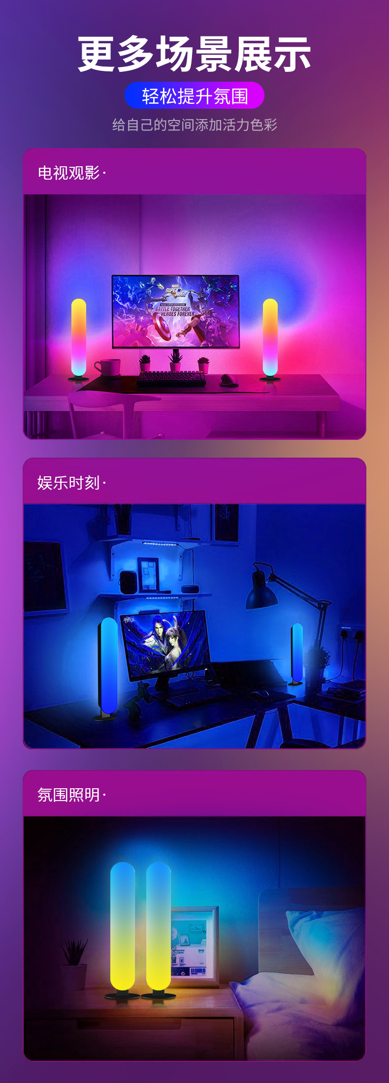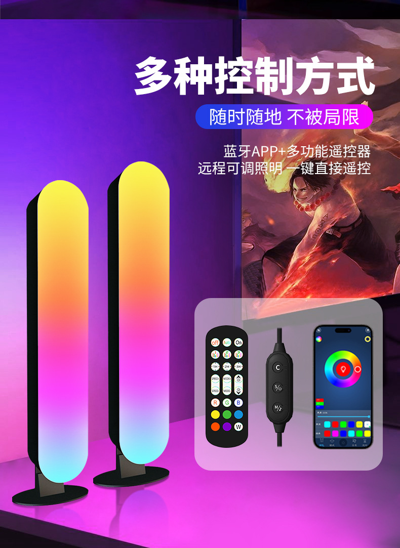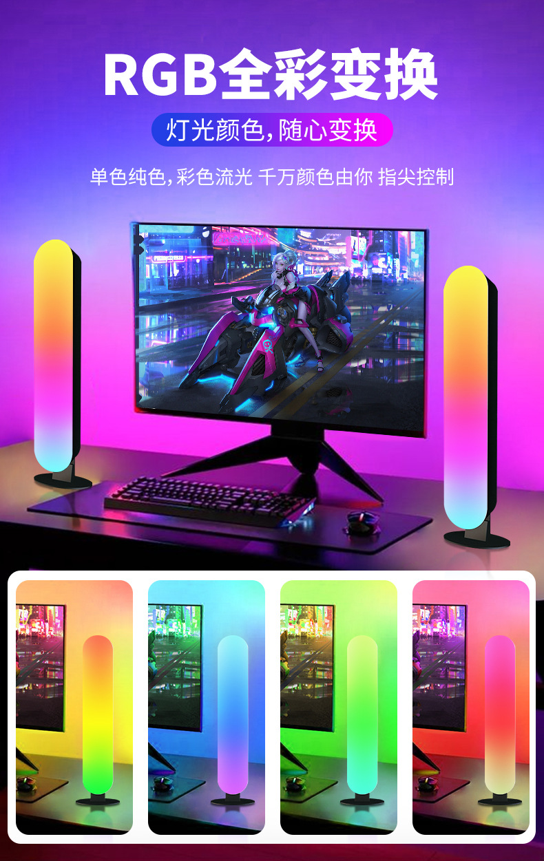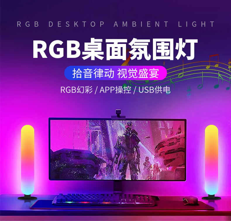 RGB桌面氛围灯电脑桌面装饰小夜灯车载蓝牙拾音感应led灯