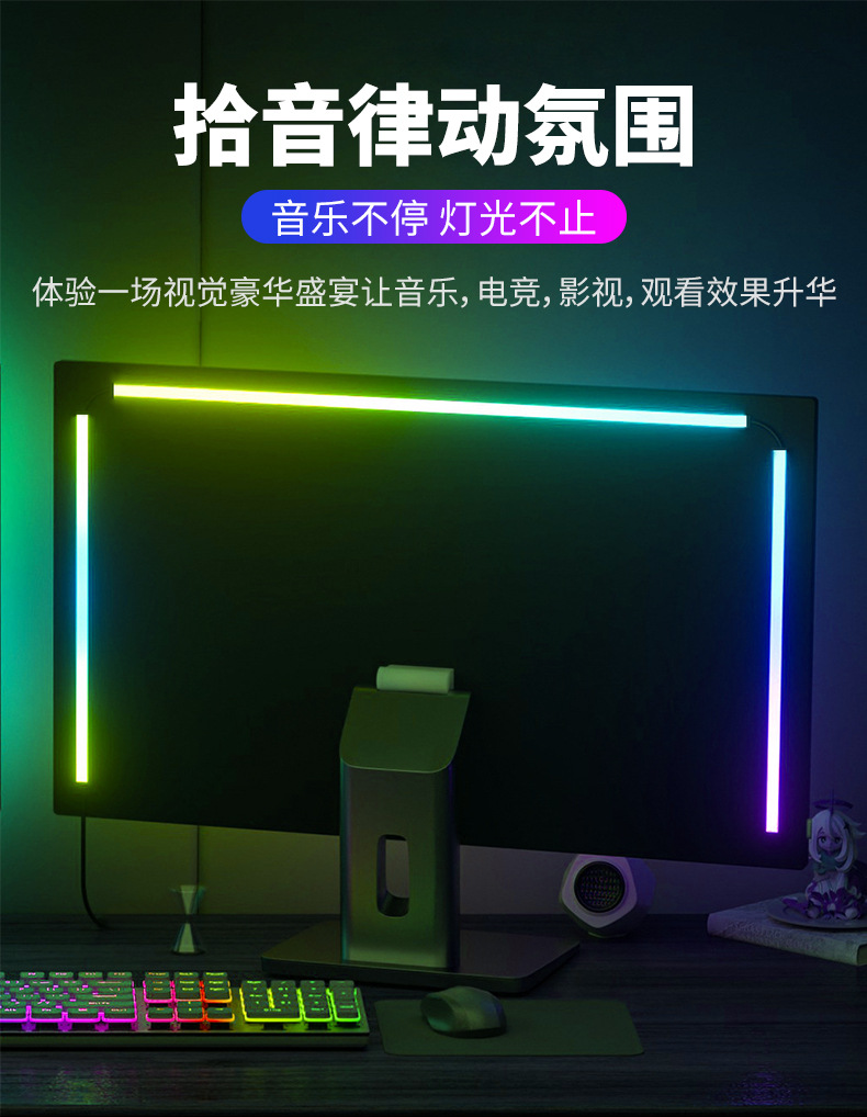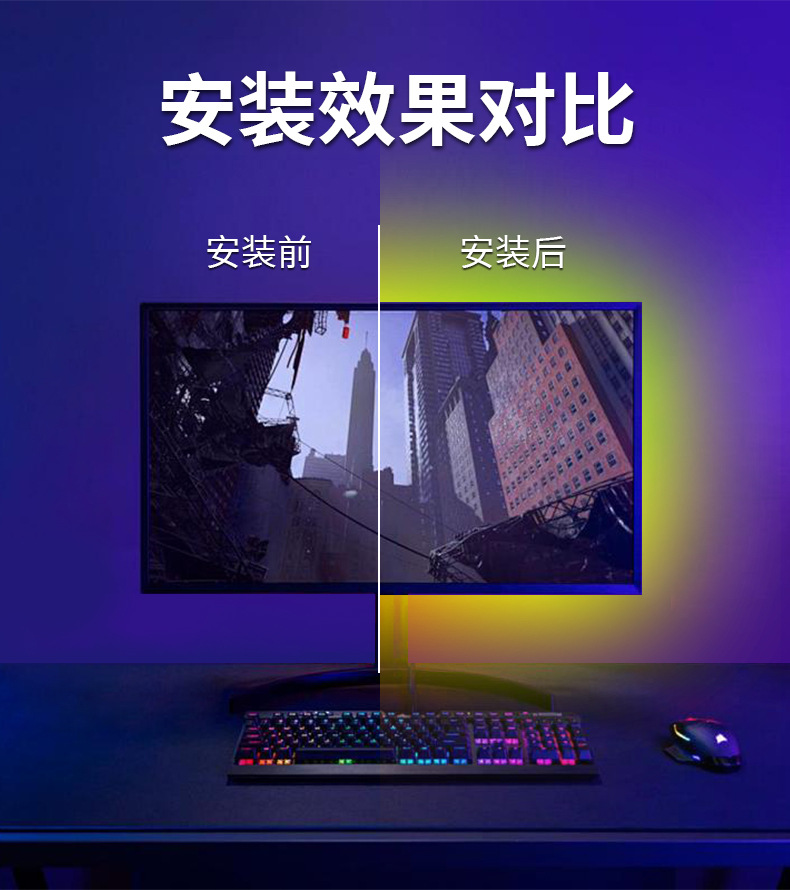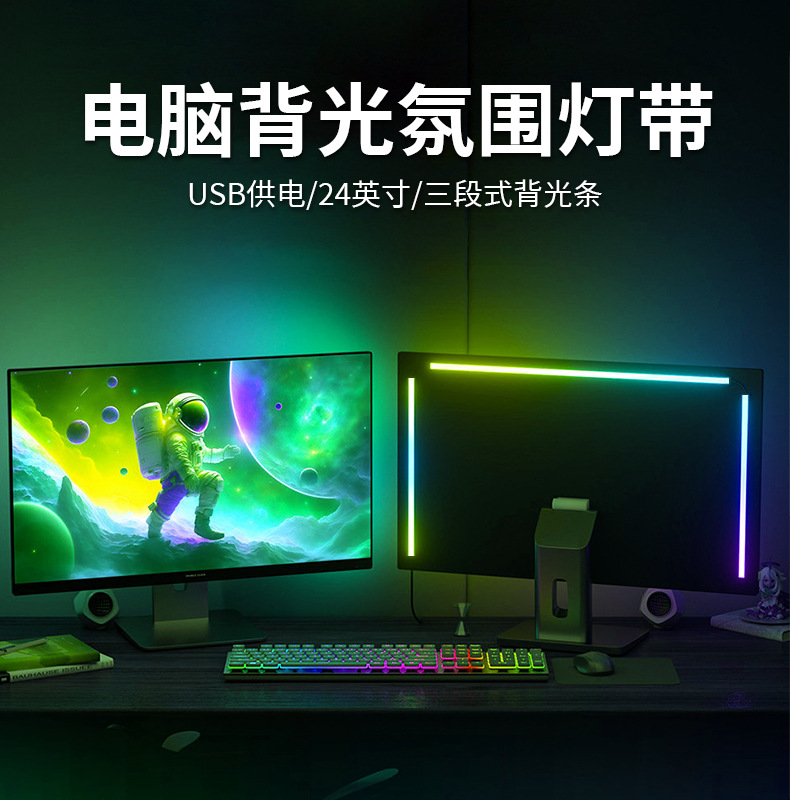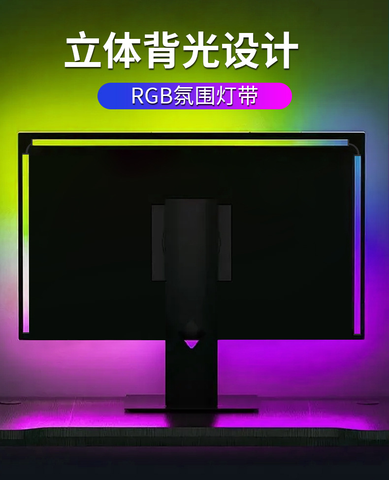 LED电脑电竞rgb幻彩氛围灯带硅胶柔性电脑背面易粘灯带