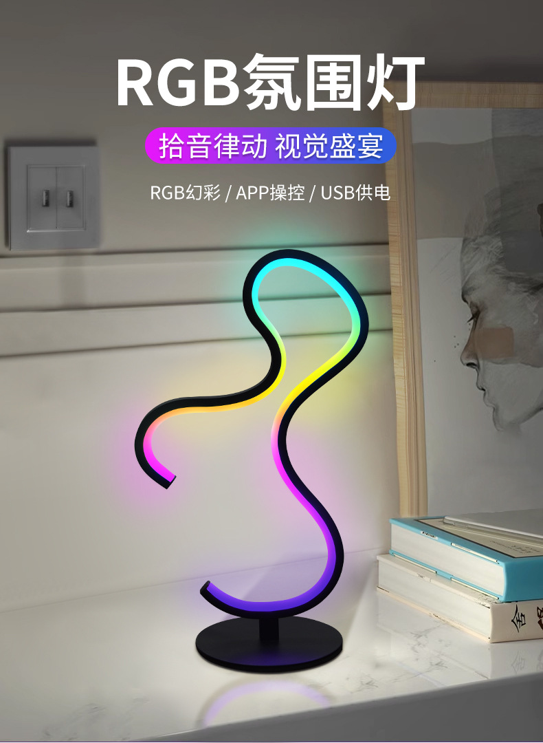 桌面异形氛围灯创意客厅装饰七彩氛围节奏拾音小夜灯声控