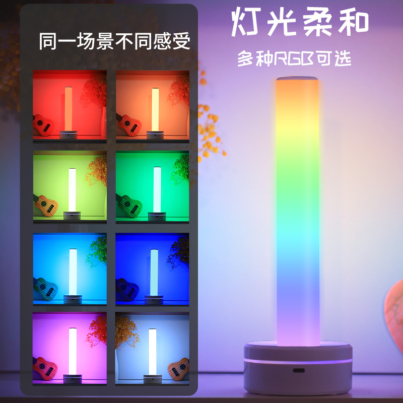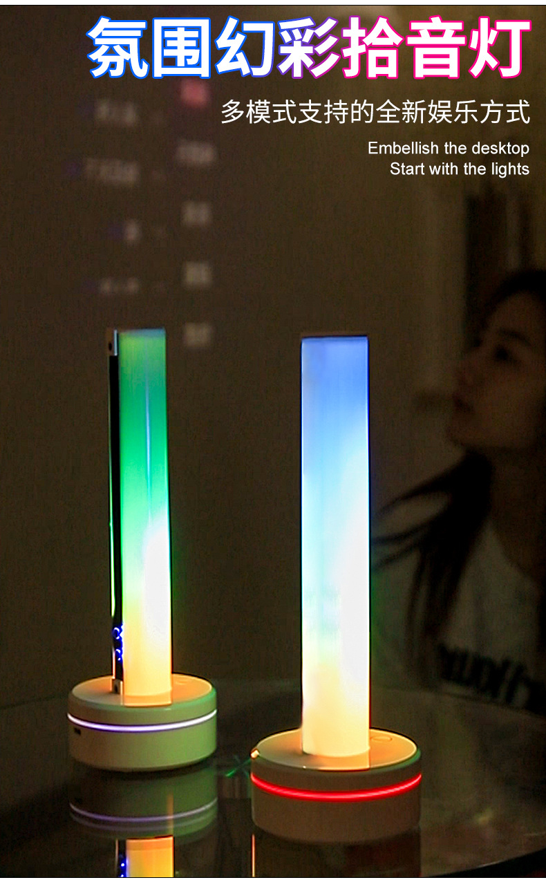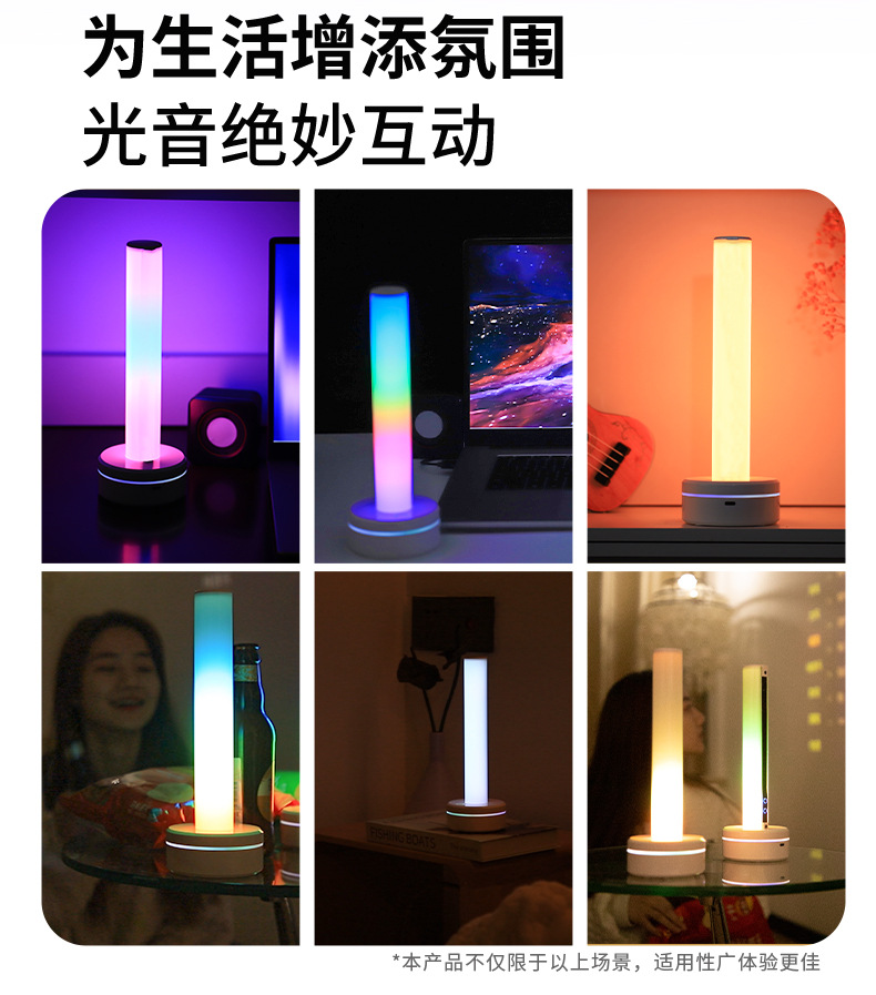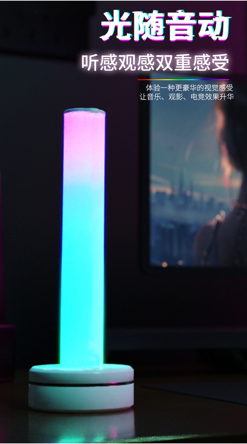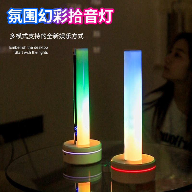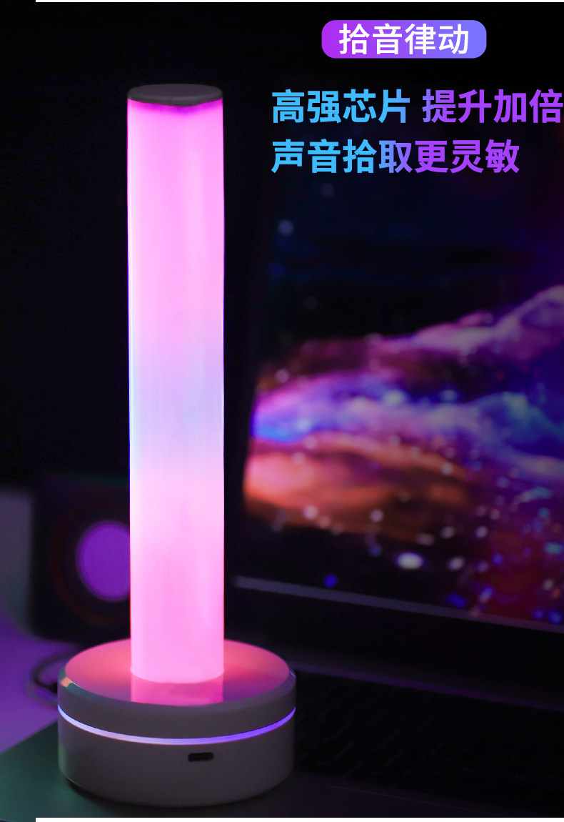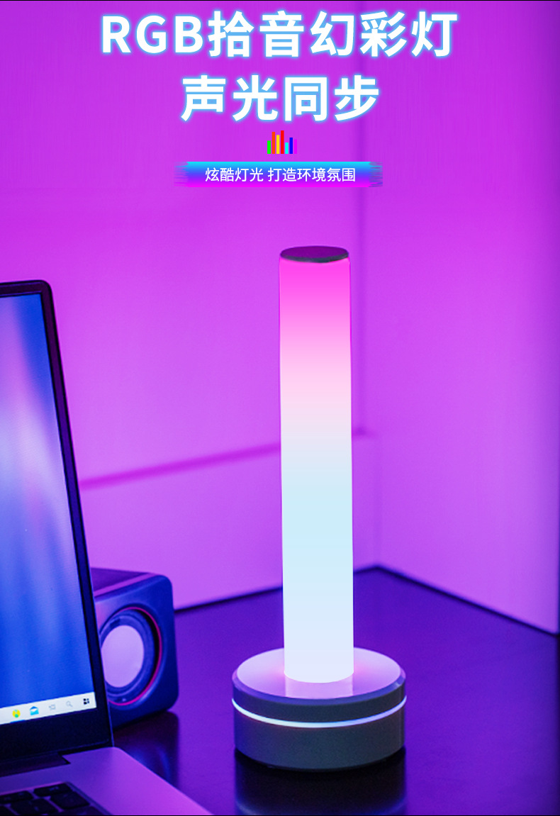 创意拾音灯电脑桌面电子声控氛围灯RGB幻彩背景音乐声控USB小夜灯