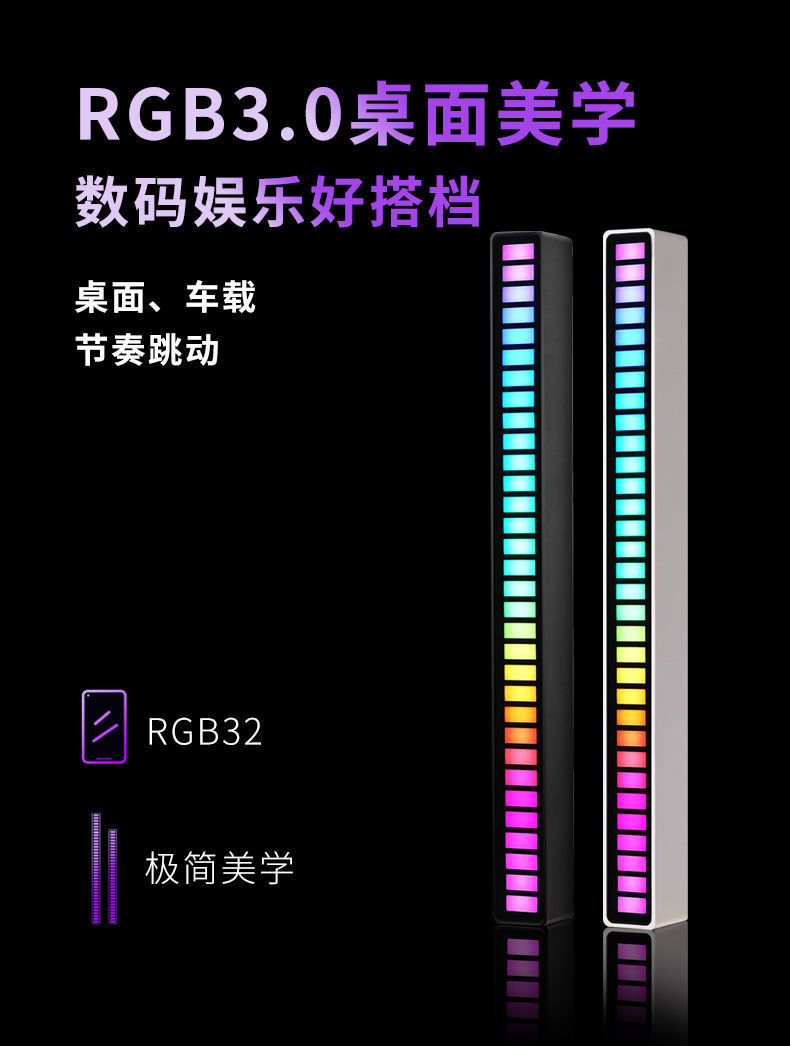 车载氛围灯LED声控灯带APP蓝牙RGB幻彩电脑桌面节奏感应灯