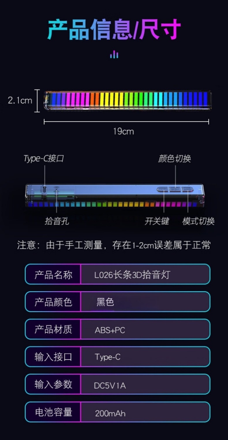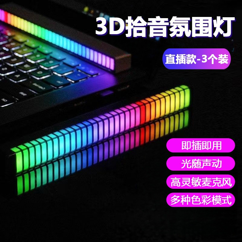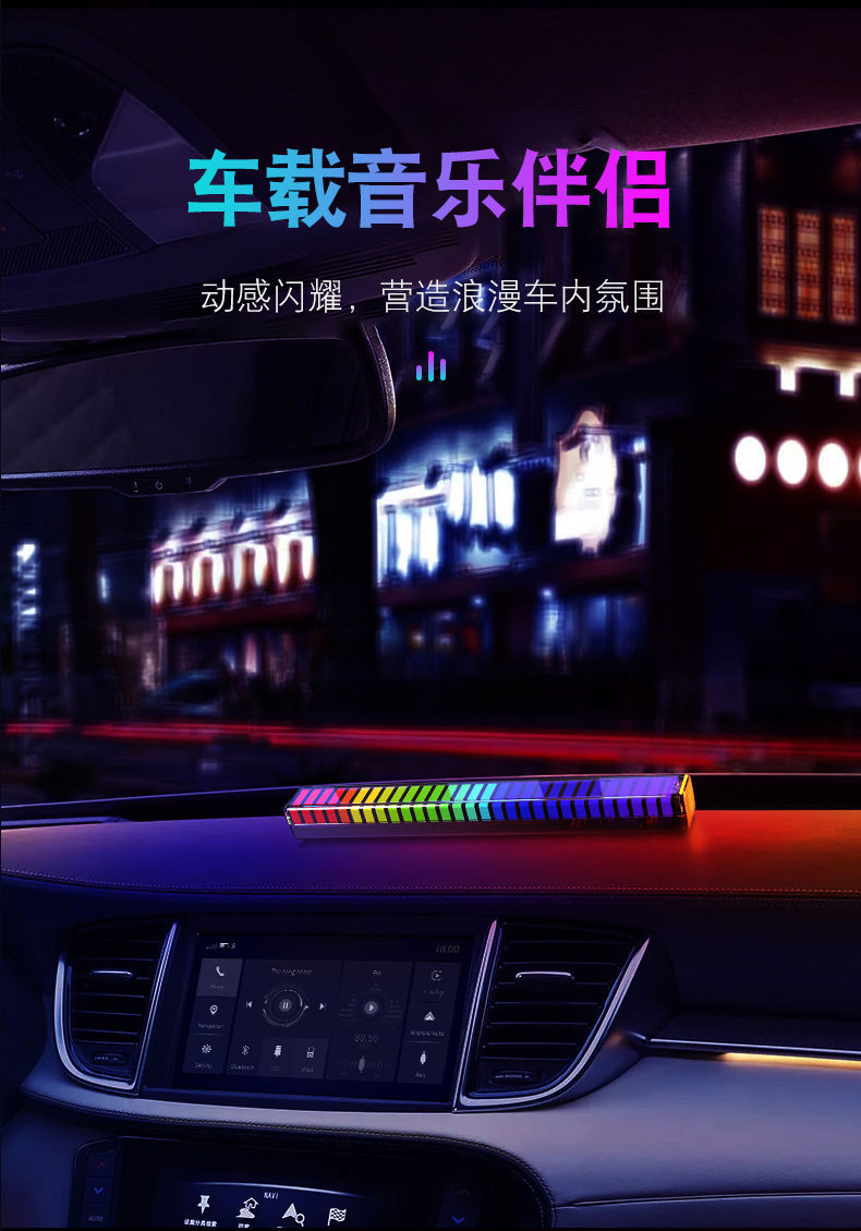 音乐声控节奏音响3D拾音旅行车载RGB氛围灯L026