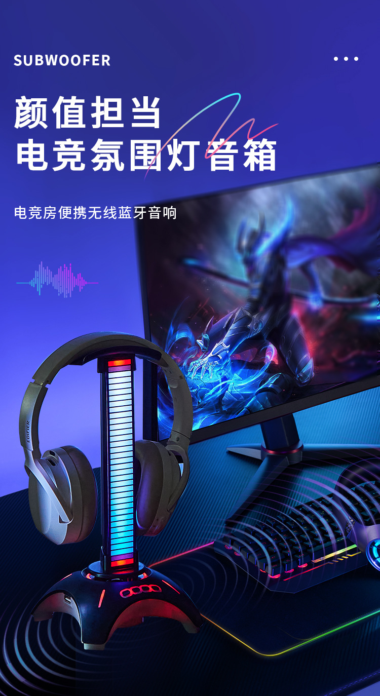 蓝牙音响氛围灯拾音灯音乐节奏灯rgb电竞氛围灯耳机支架