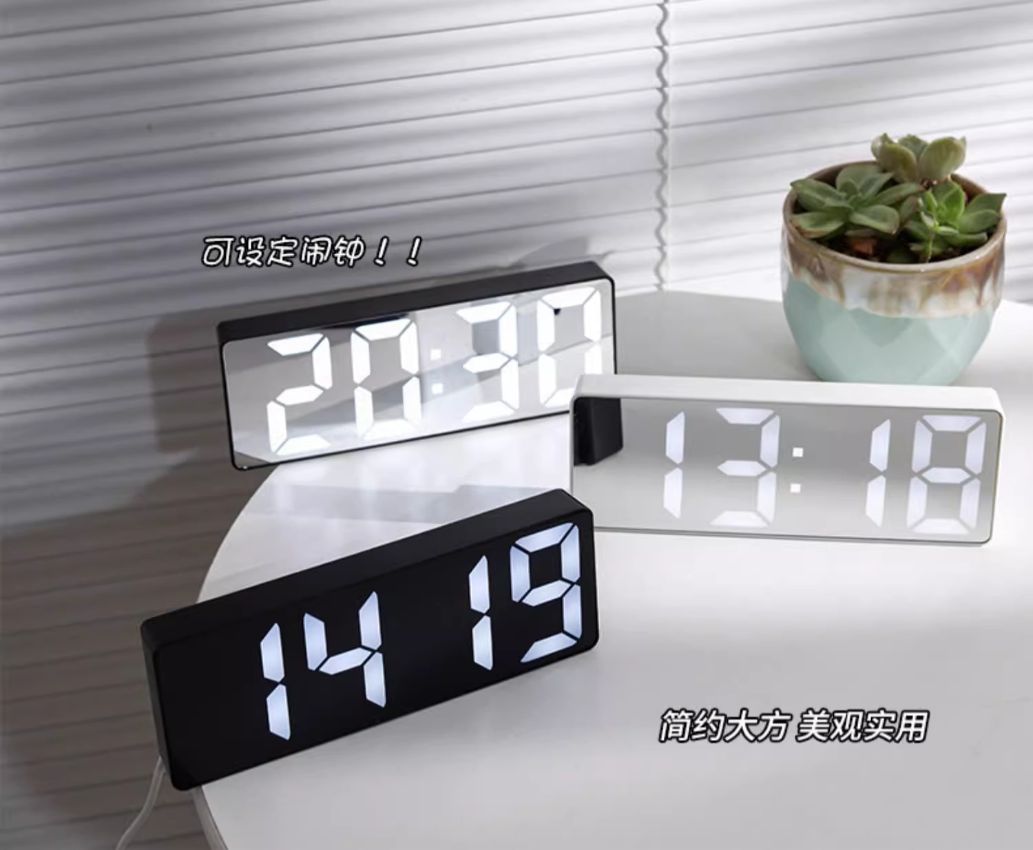 白色镜面闹钟升级款(送usb线+电池)多功能