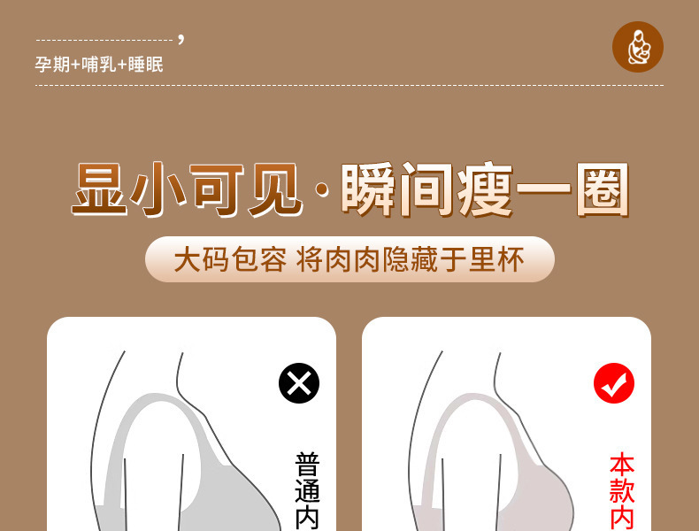 【哺乳期】大胸显小大码无痕哺乳内衣舒适防下垂收副乳孕妇文胸提