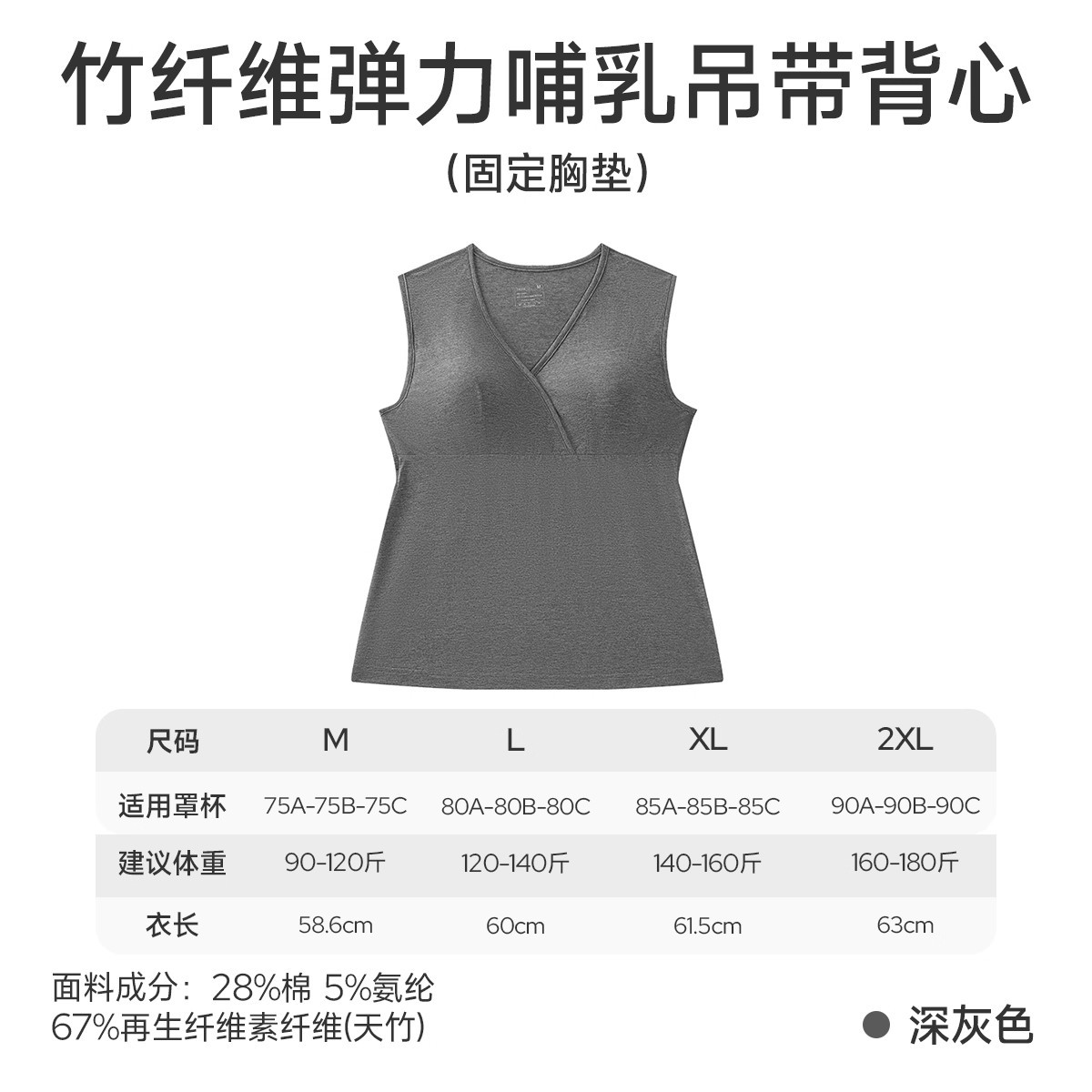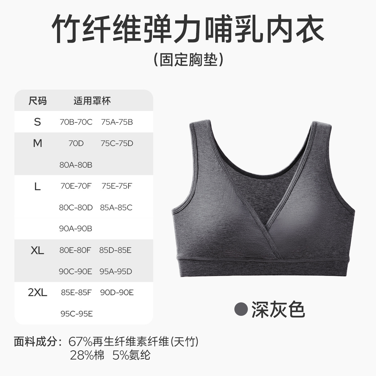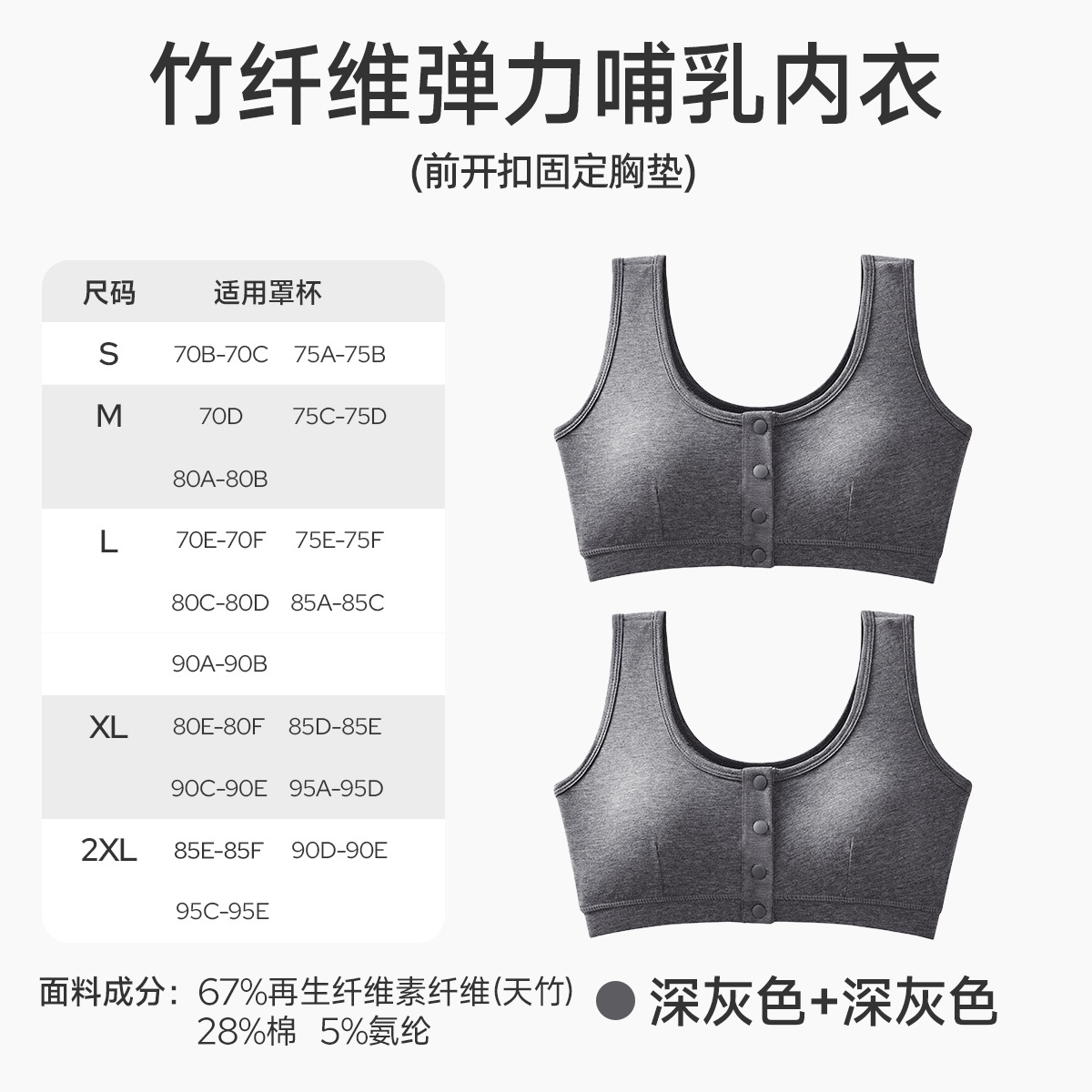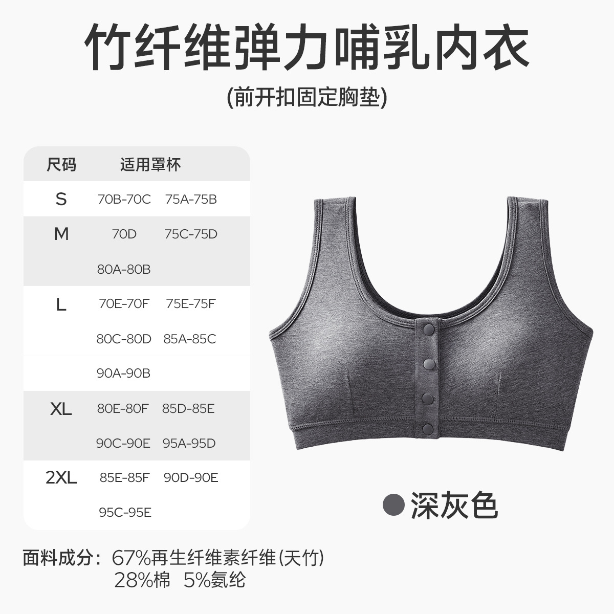 - 深灰色【天然竹纤维】【前开扣哺乳】【10A抗菌】