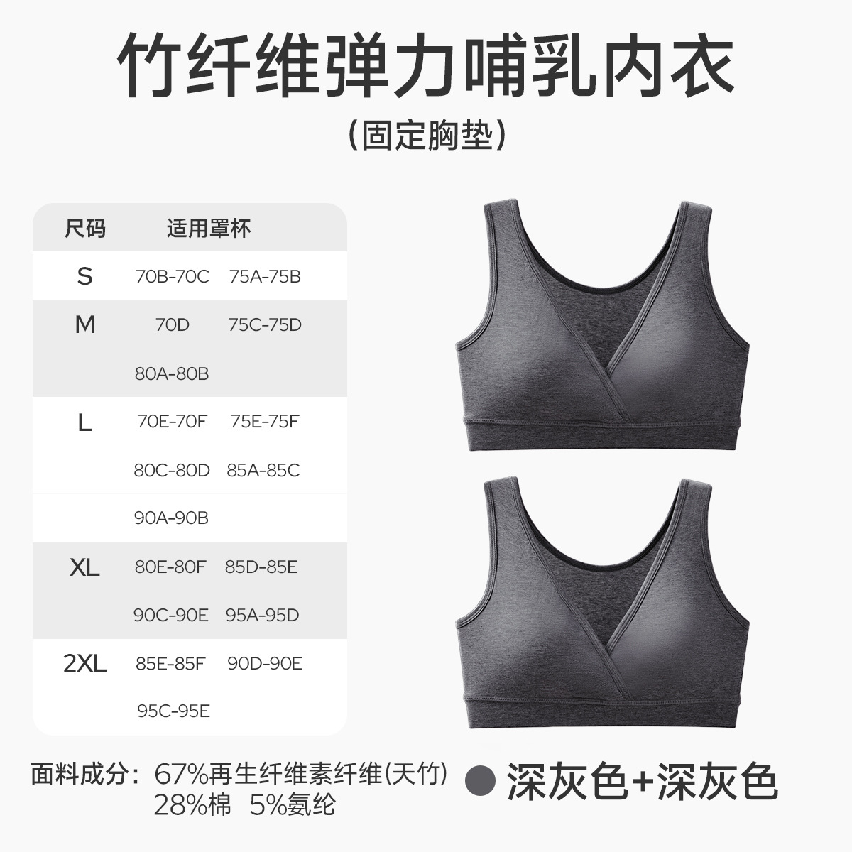 - 深灰色+深灰色【天然竹纤维】【涨奶不勒胸】【10A抗菌】