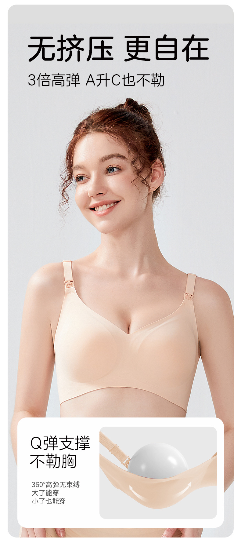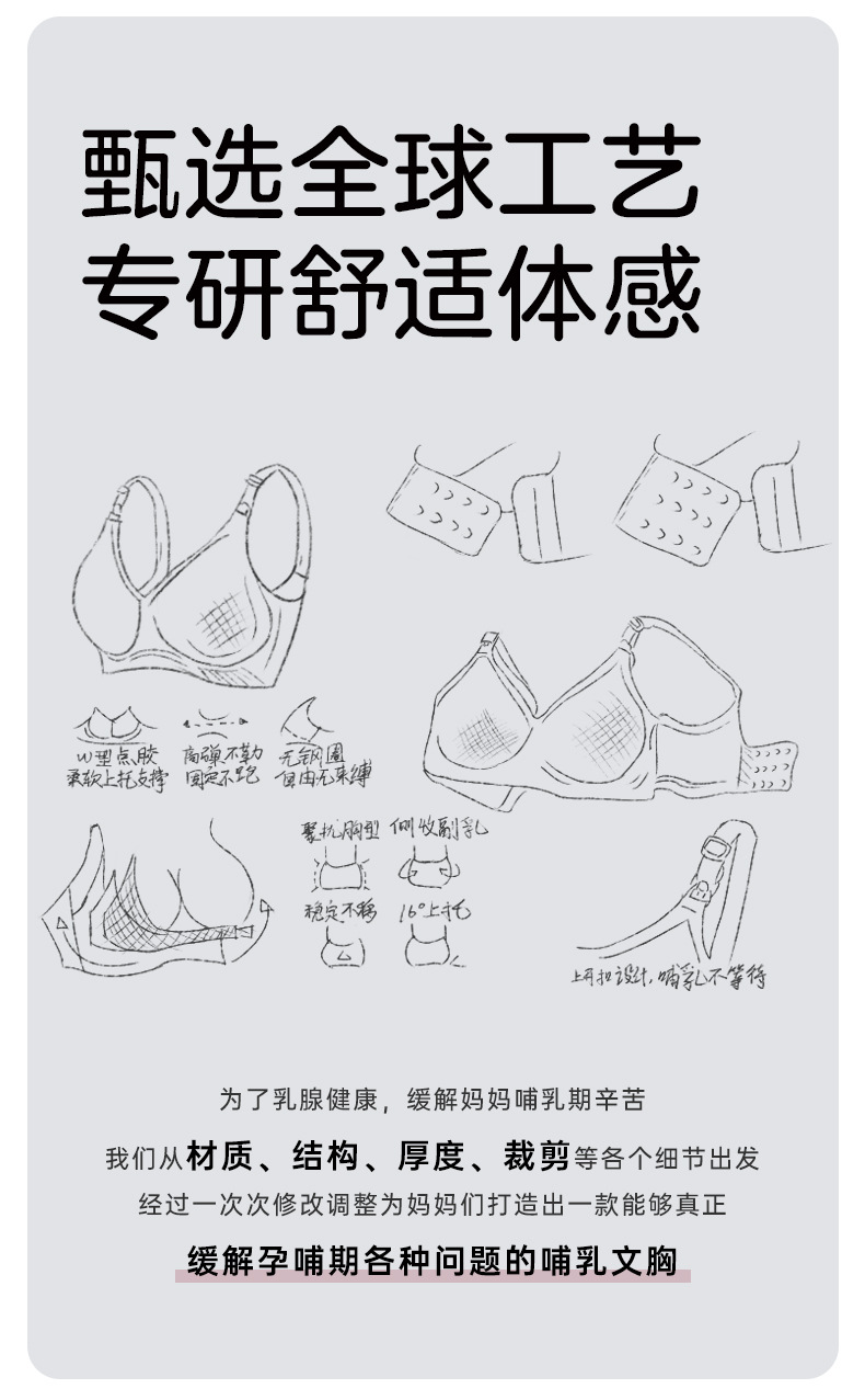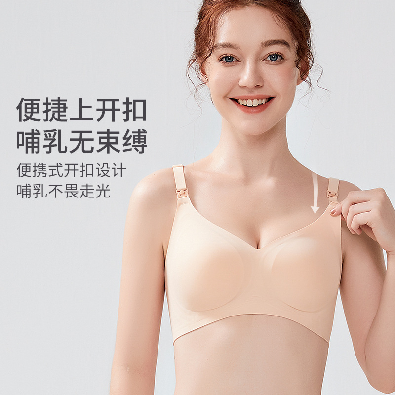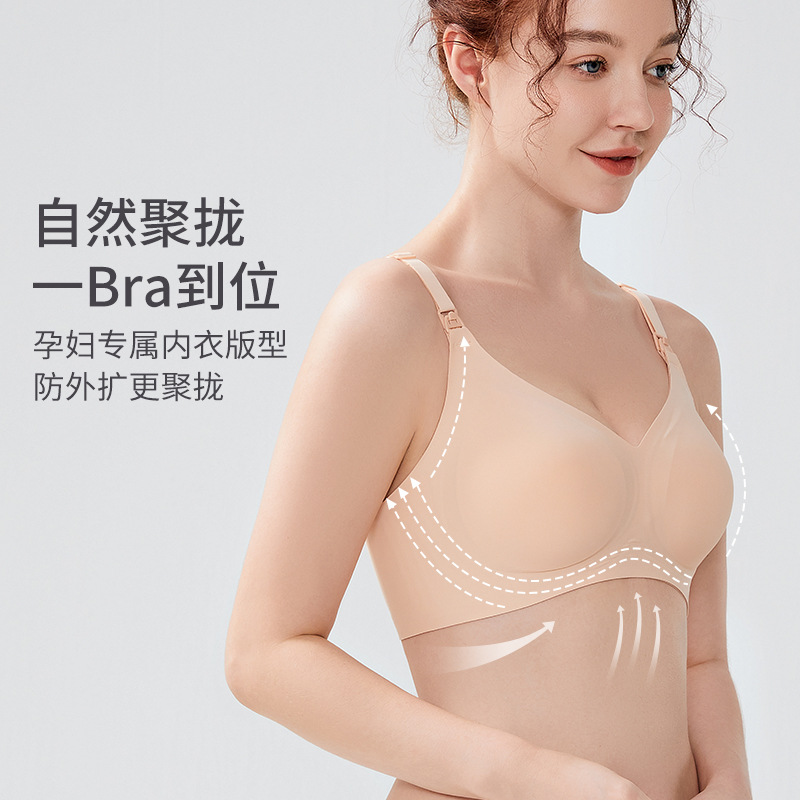 ROVO孕妇哺乳内衣春秋冬款聚拢防下垂无痕大胸固定杯文胸