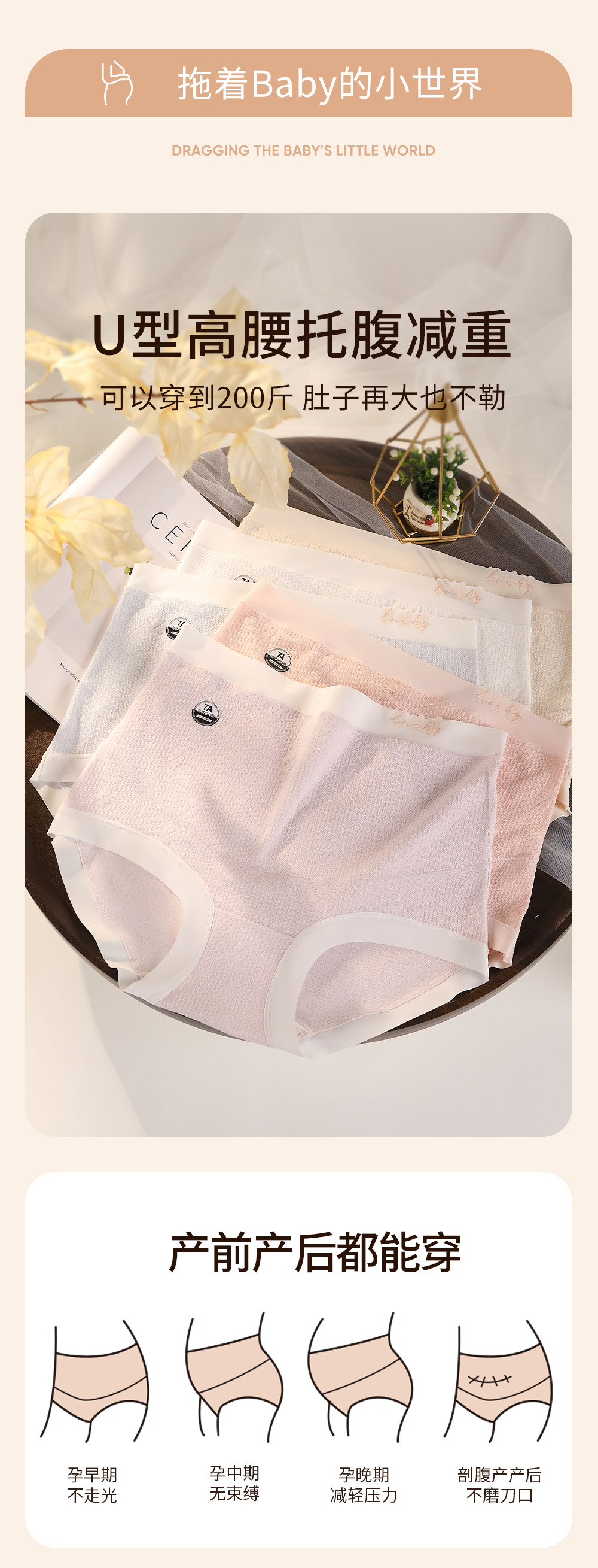 孕妇内裤纯棉不勒肚高腰托腹7A抗菌亲肤a类四叶草孕中期晚期内裤