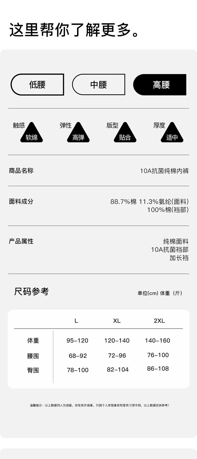 - 【3条装】灰紫+浅蓝+浅灰 16cm加长底档 10A抗菌