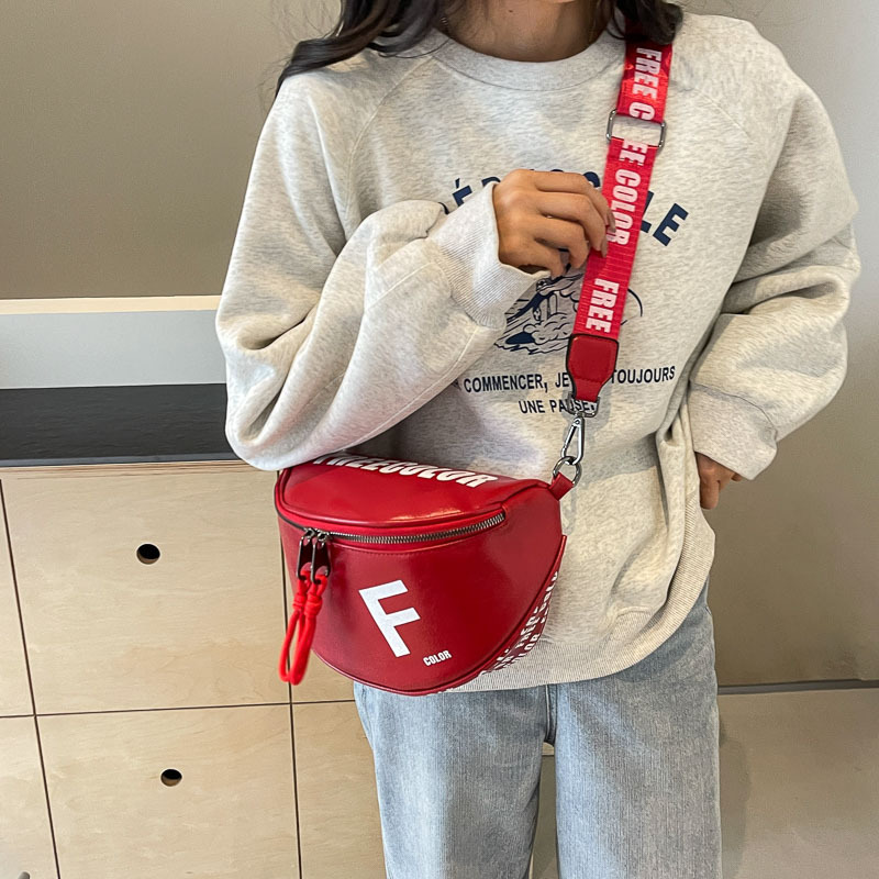 纯色PU潮流个性字母印花酷帅宽肩带小包女包单肩包斜挎包