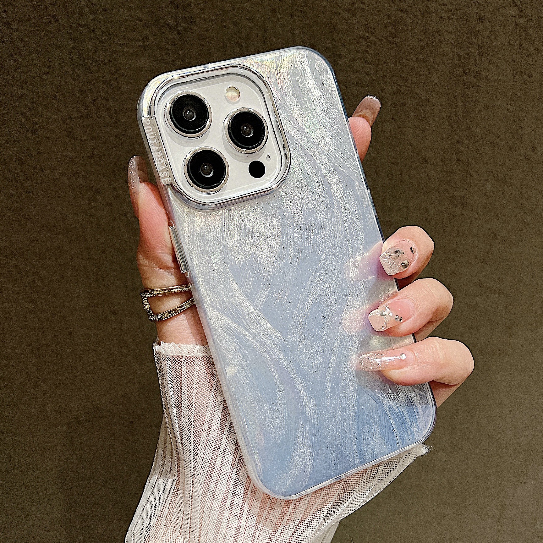 ins风贝壳纹适用苹果15手机壳IMD羽毛iPhone14时尚13Promax硬壳女