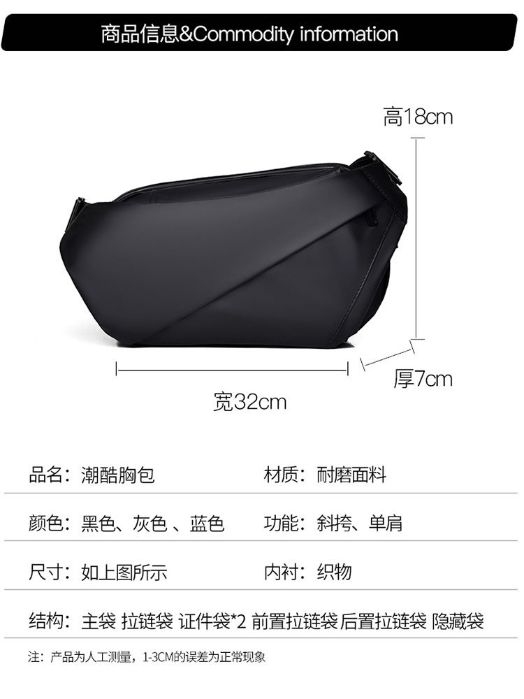 骑行挎包男生户外运动胸包PU皮质单肩包防水大容量时尚斜挎包潮酷