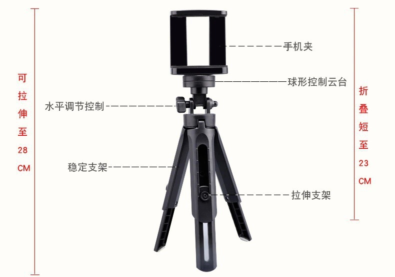 云台三脚架自拍360°调节手机桌面抖音网红支架自拍手机支架