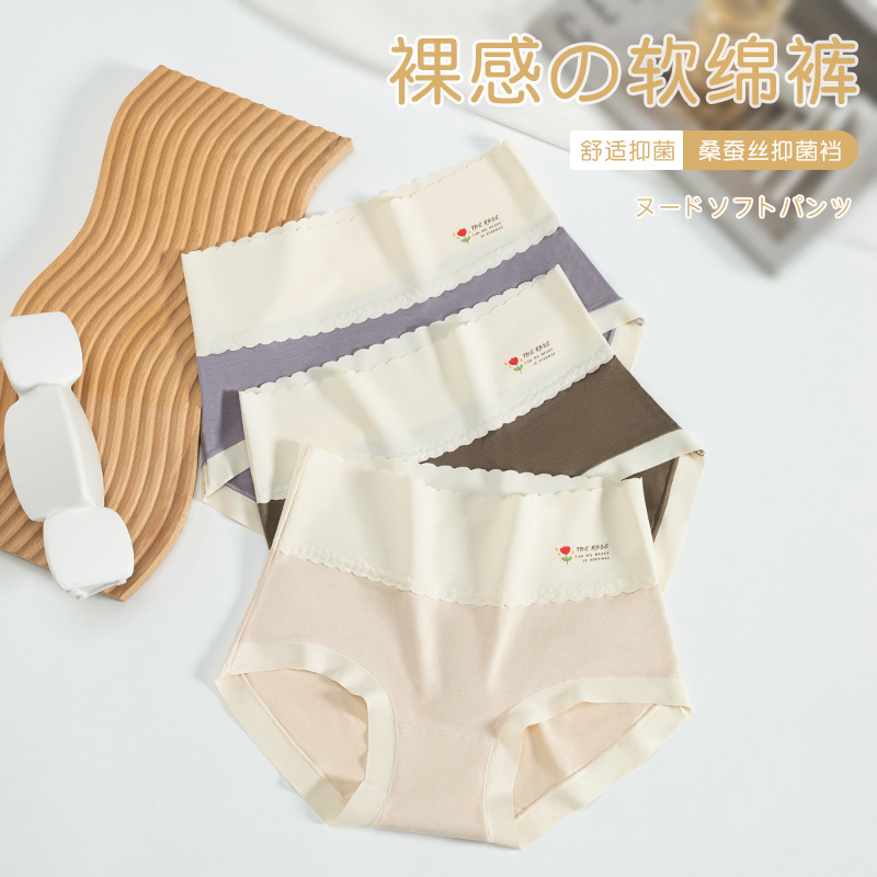 盒装4条无痕女士内裤 高腰舒适透气三角裤女 桑蚕丝女内裤
