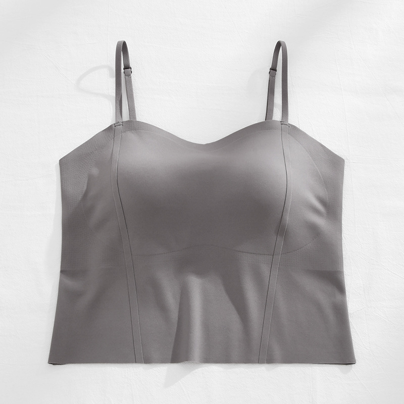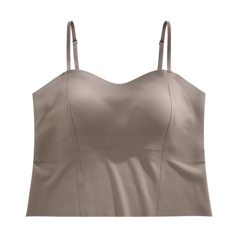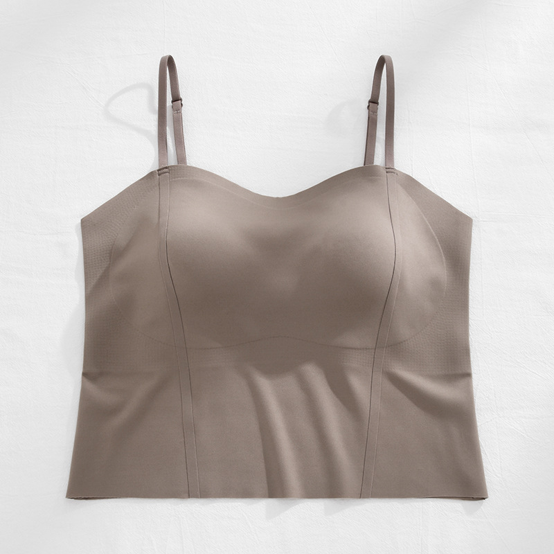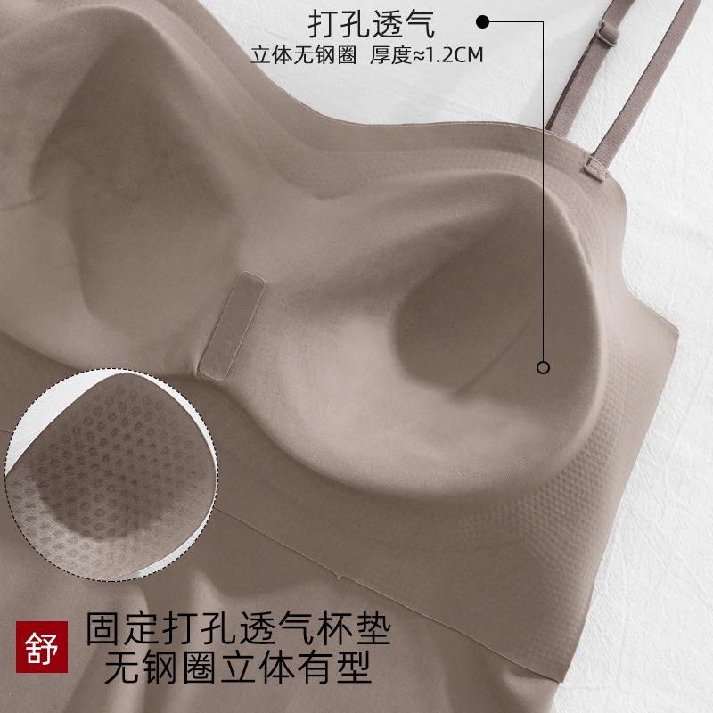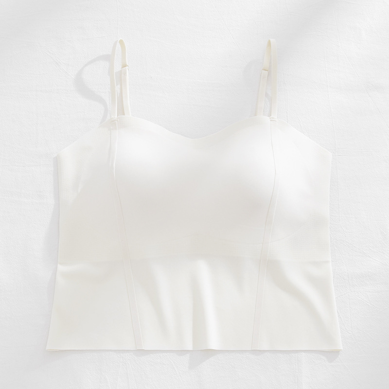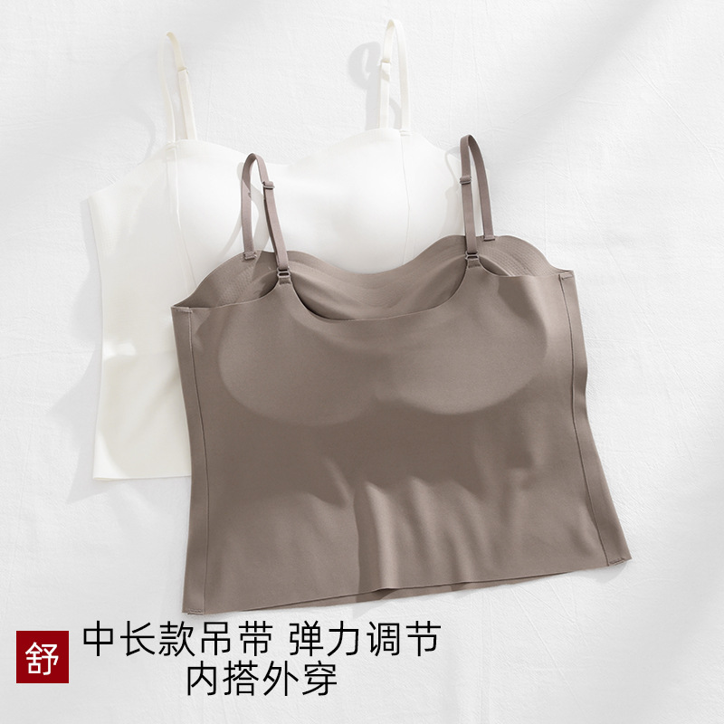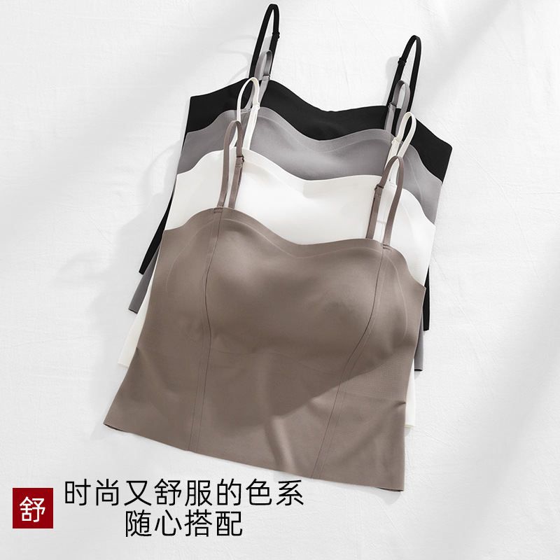 春新款冰丝无痕内衣女士文胸无钢圈带胸垫一体杯内搭打底吊带背心