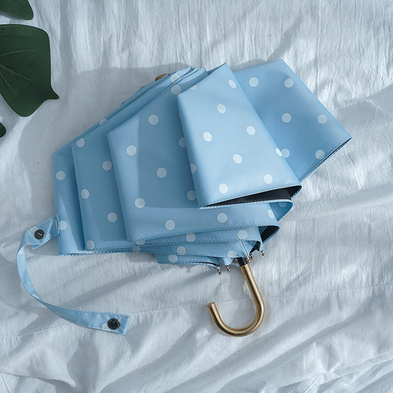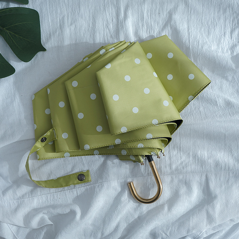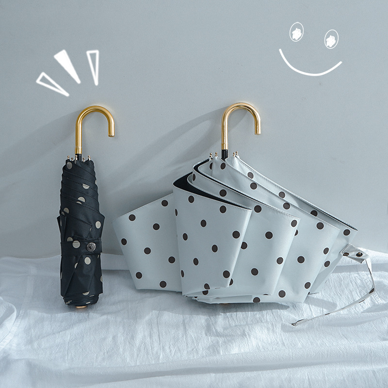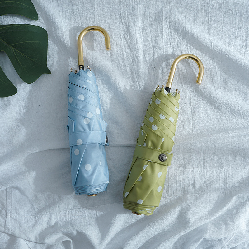 日系复古波点遮阳伞防晒防紫外线太阳伞女弯钩晴雨两用折叠伞