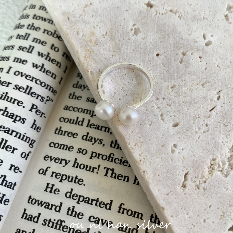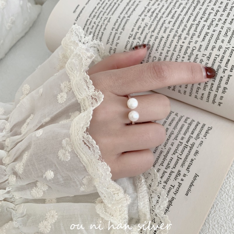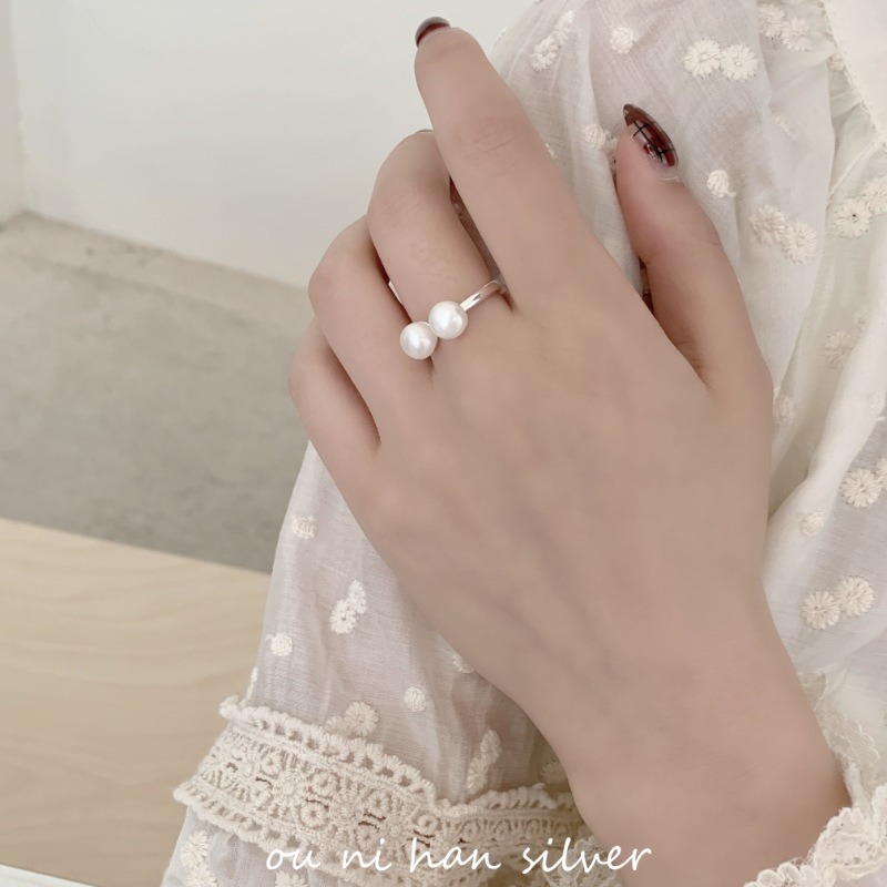 欧尼 S925纯银淡水珍珠开口戒指女ins风小众设计轻奢时尚气质食指