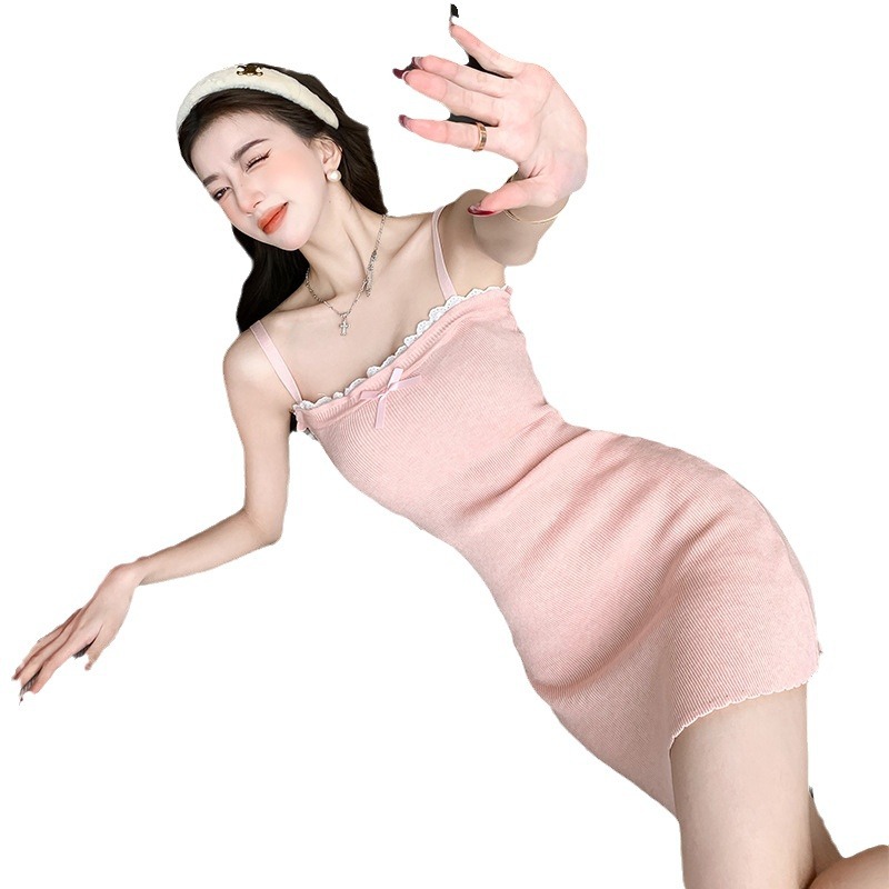 夏季新款粉色纯欲性感吊带连衣裙包臀收腰内搭短裙甜辣风高级