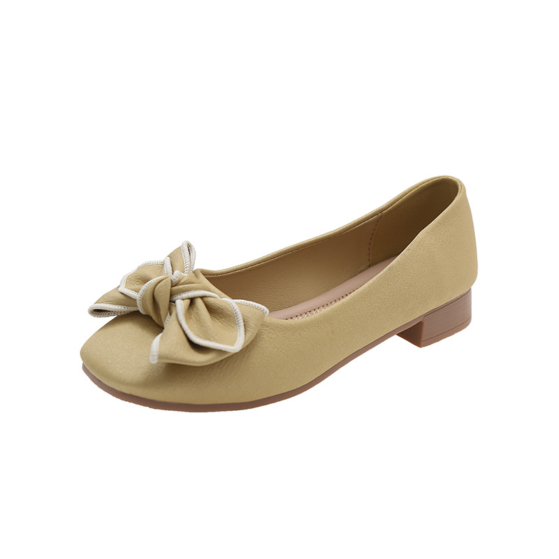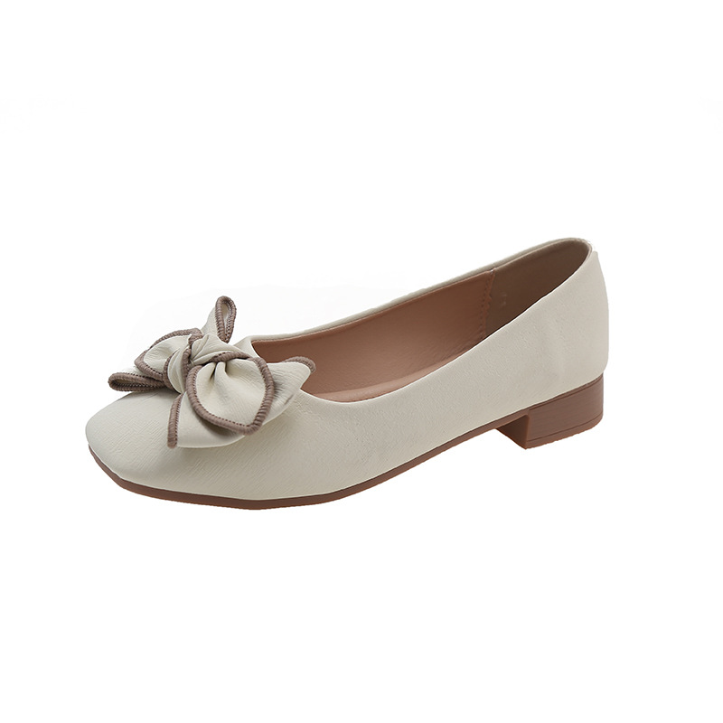 小香风蝴蝶结浅口单鞋女春夏新款软底一脚蹬豆豆鞋大码女鞋