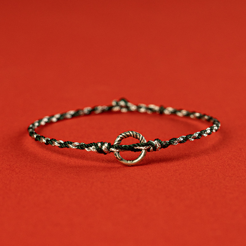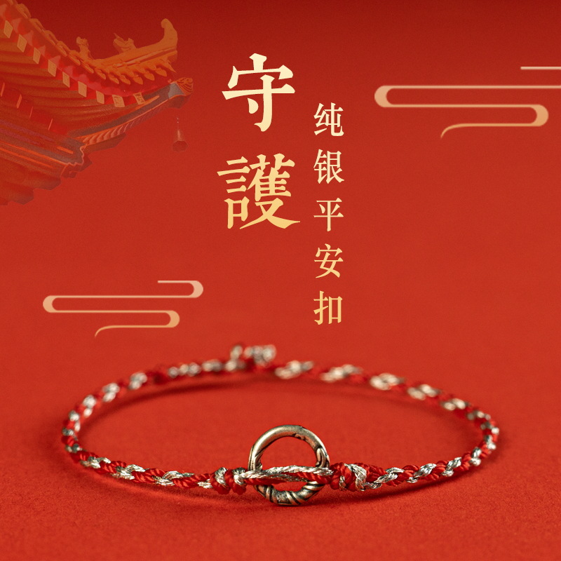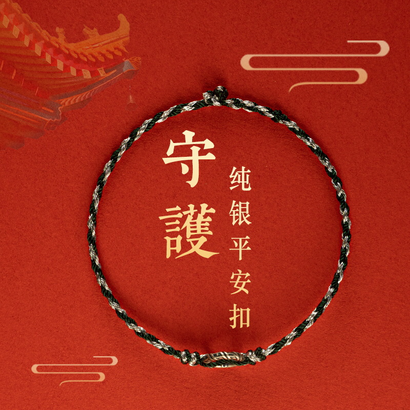 编织绳本命年925银平安扣手链女细款好运红绳儿童宝宝脚链男情侣