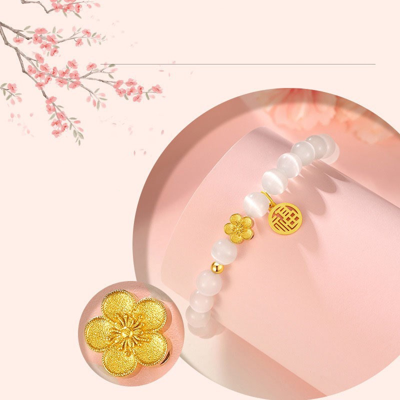 猫眼石桃花水晶串珠手链福牌轻奢高级感手串送女友新中式国风饰品