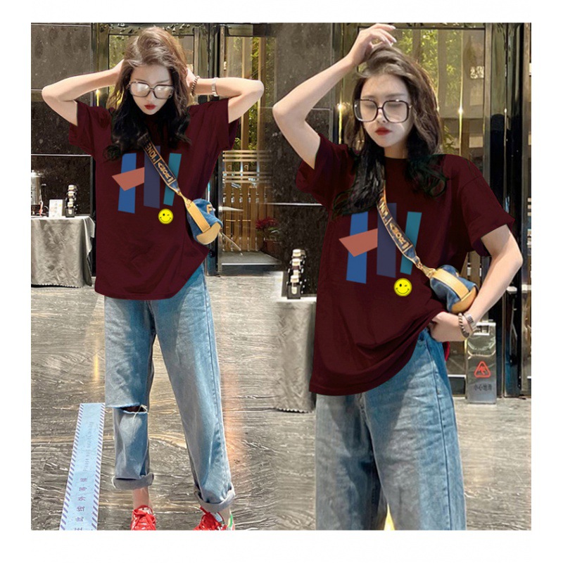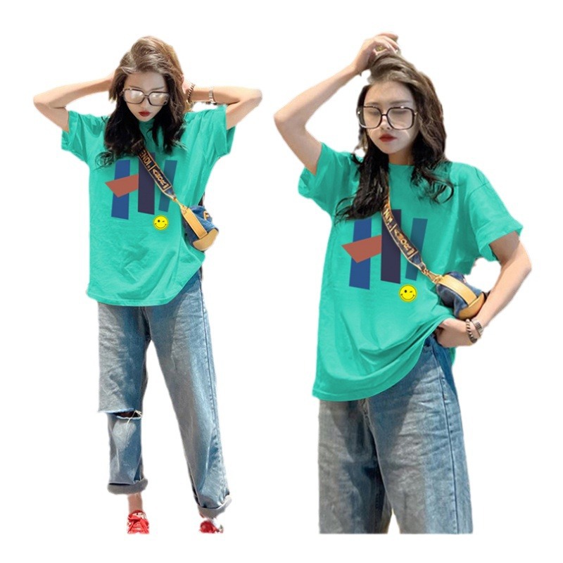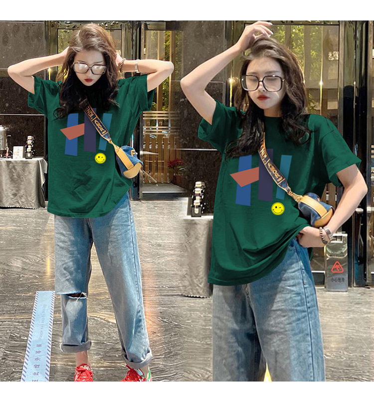 欧货上衣t恤衫女士夏季新款短袖中长款圆领宽松体恤ins潮