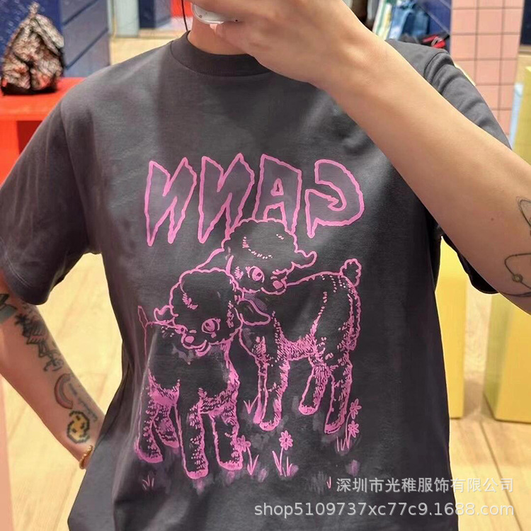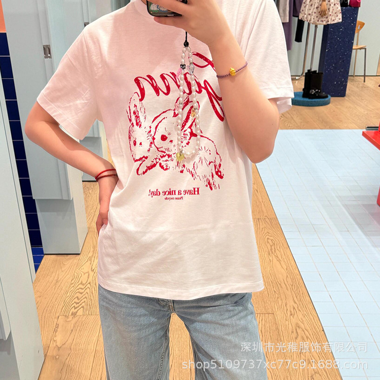 24春夏小动物系列宽松卡通北欧风套头T恤