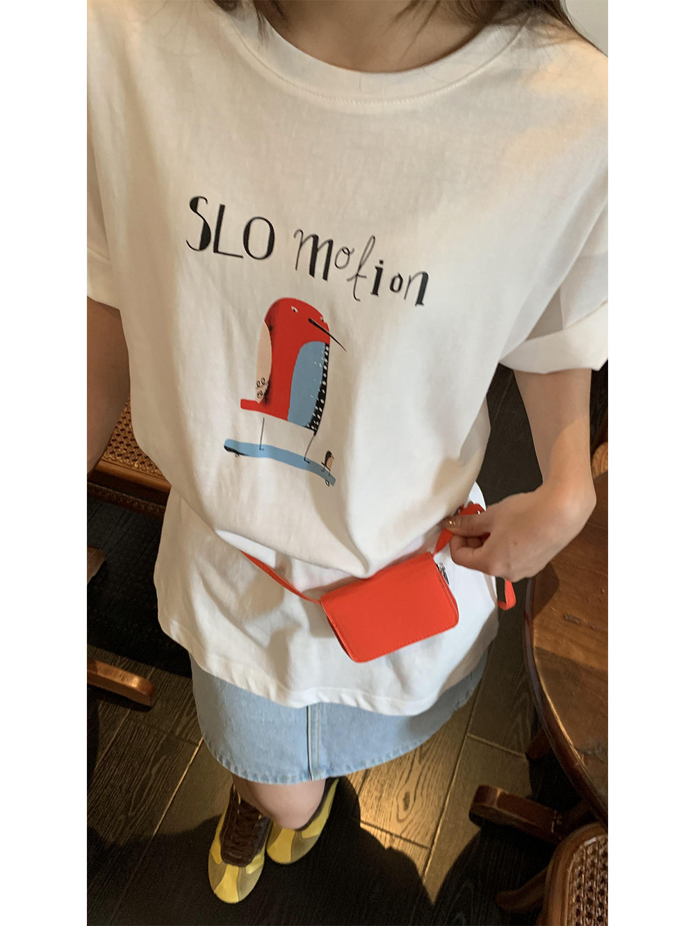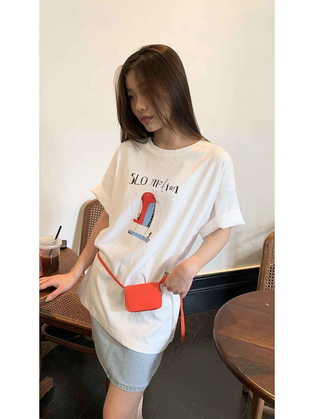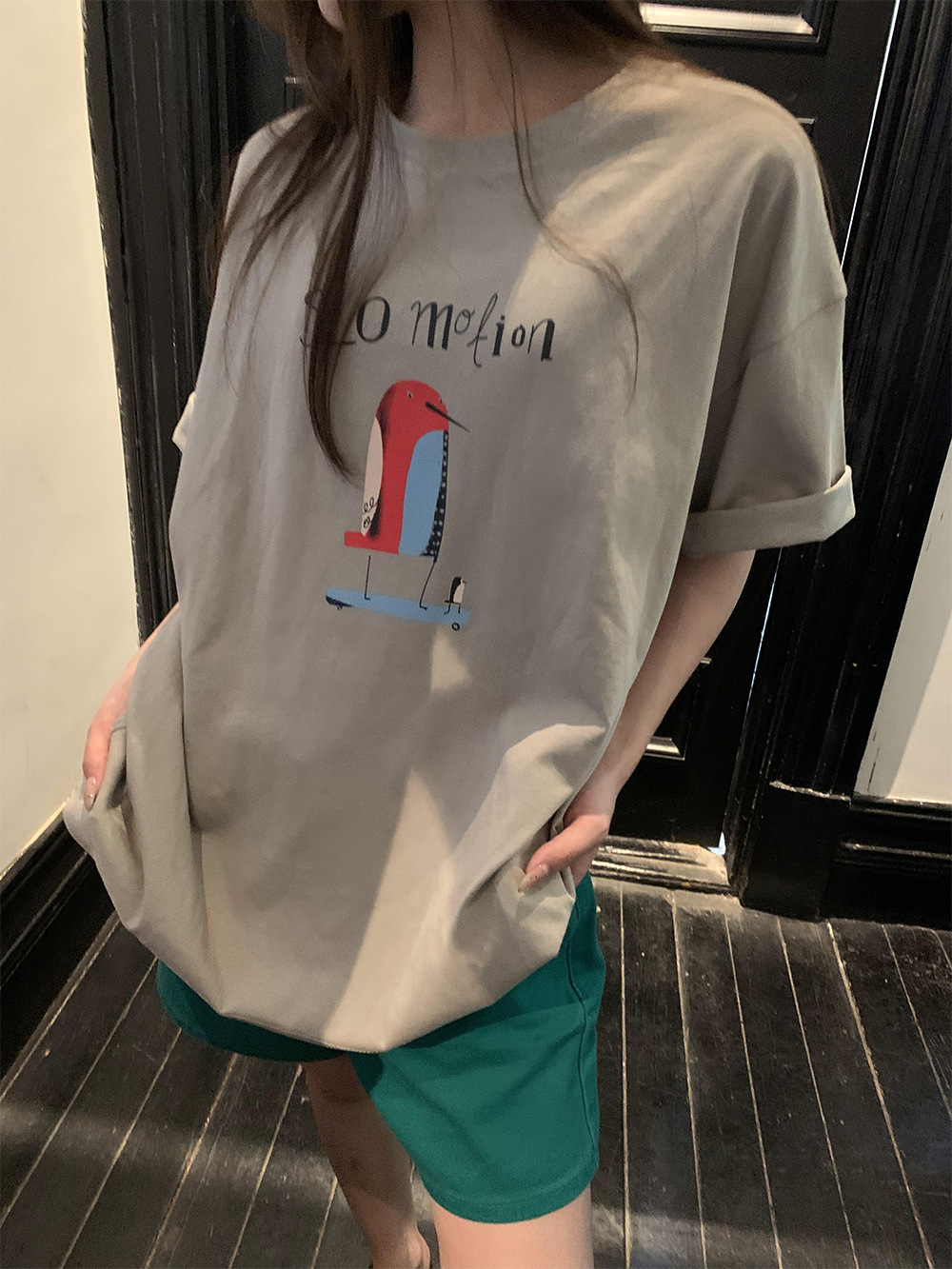 新款夏季ins宽松慵懒风百搭t恤女创意小鸟印花短袖上衣女