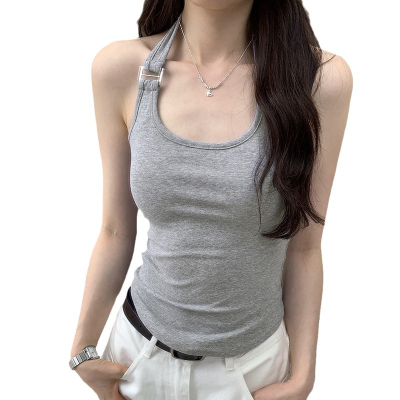 辣妹设计感挂脖吊带背心女夏季新款外穿收腰性感露背上衣