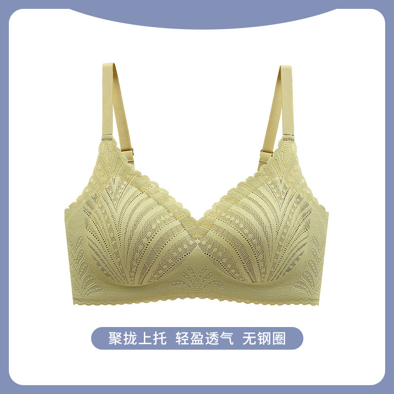 法式蕾丝内衣大胸显小聚拢无钢圈上托防下垂收副乳固定杯薄款文胸