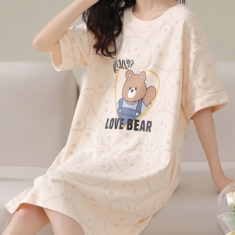 98%新款睡裙女夏天全棉新款中长款学生高颜值睡衣家居服套装