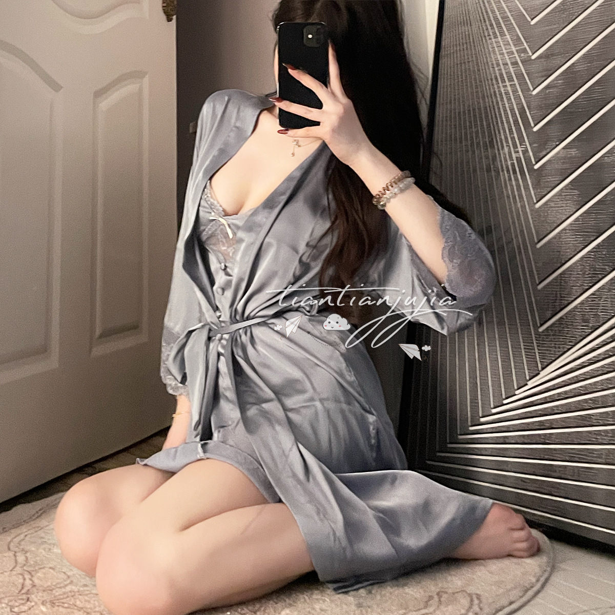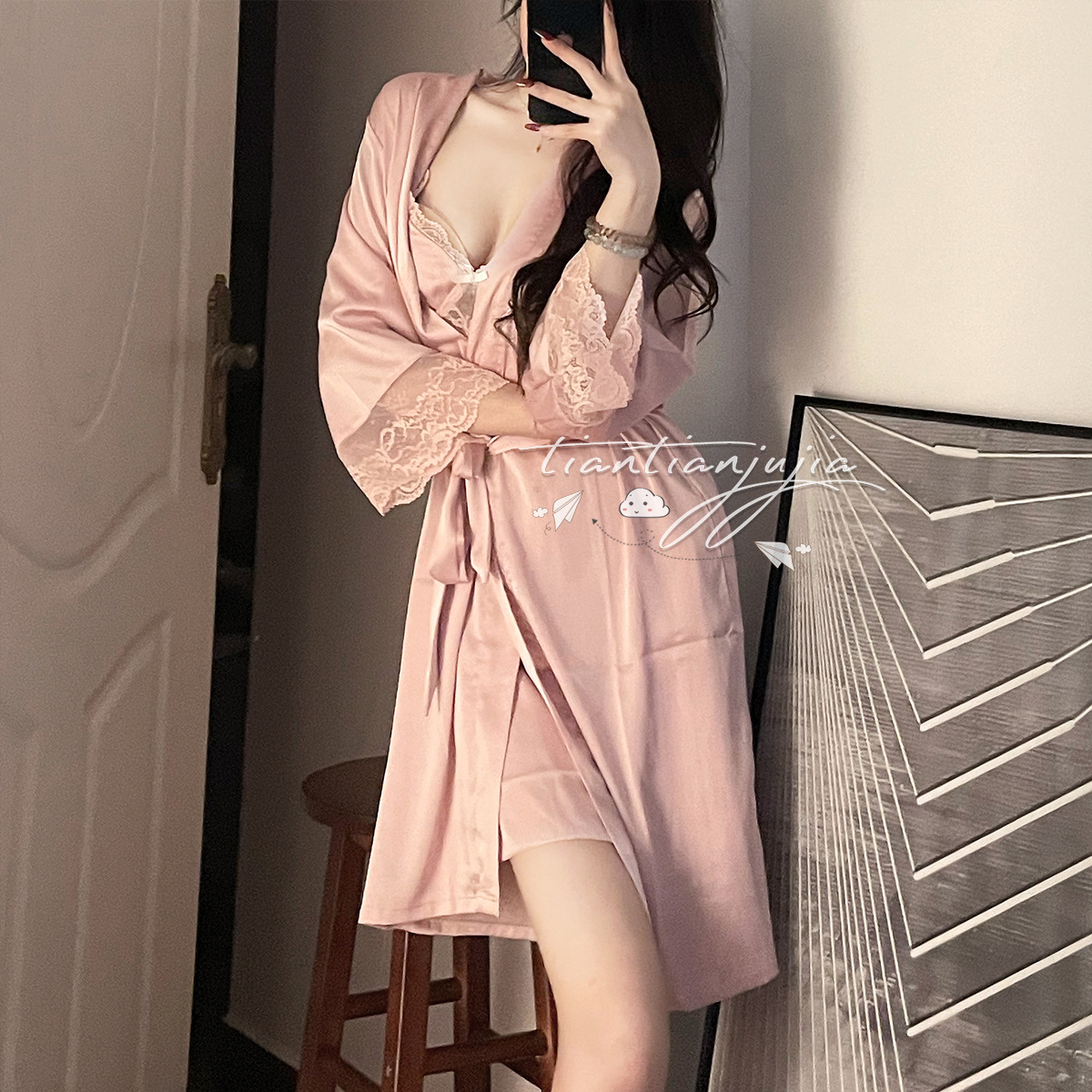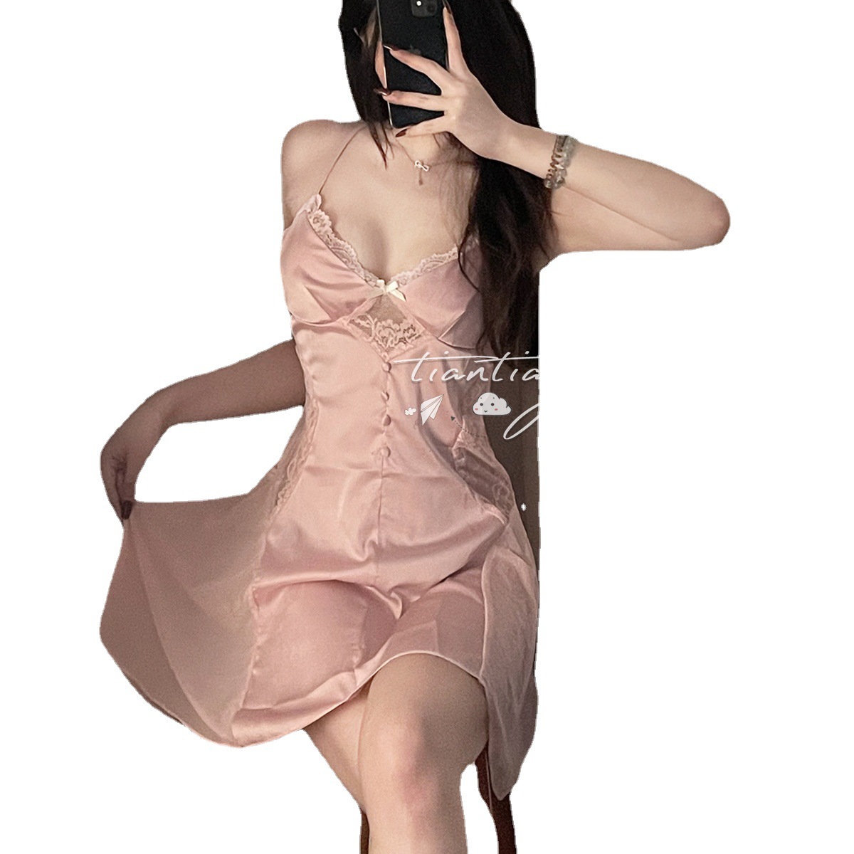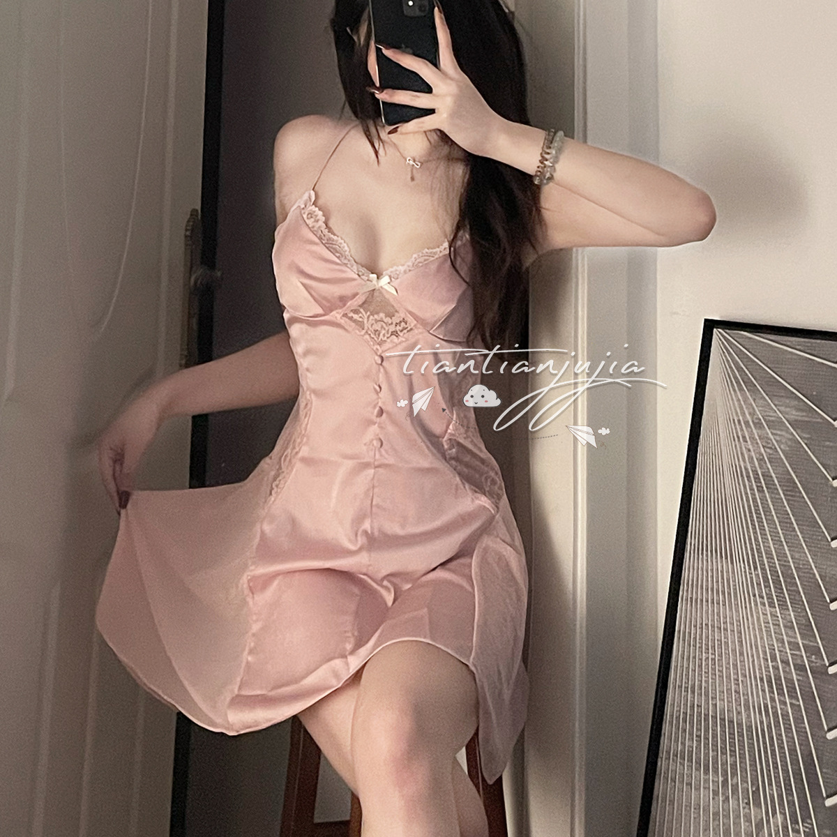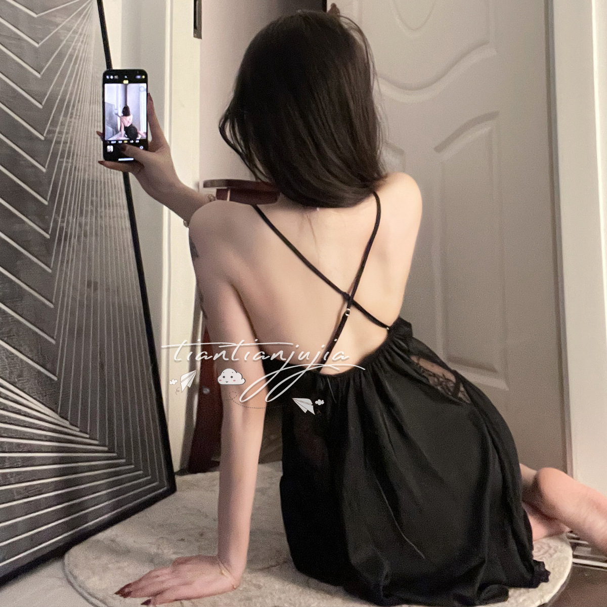 性感睡衣女黑色蕾丝冰丝睡裙小胸吊带睡袍纯欲高级感夏季新款