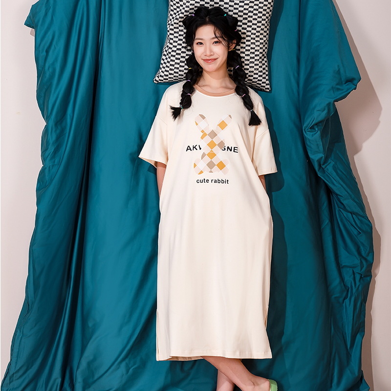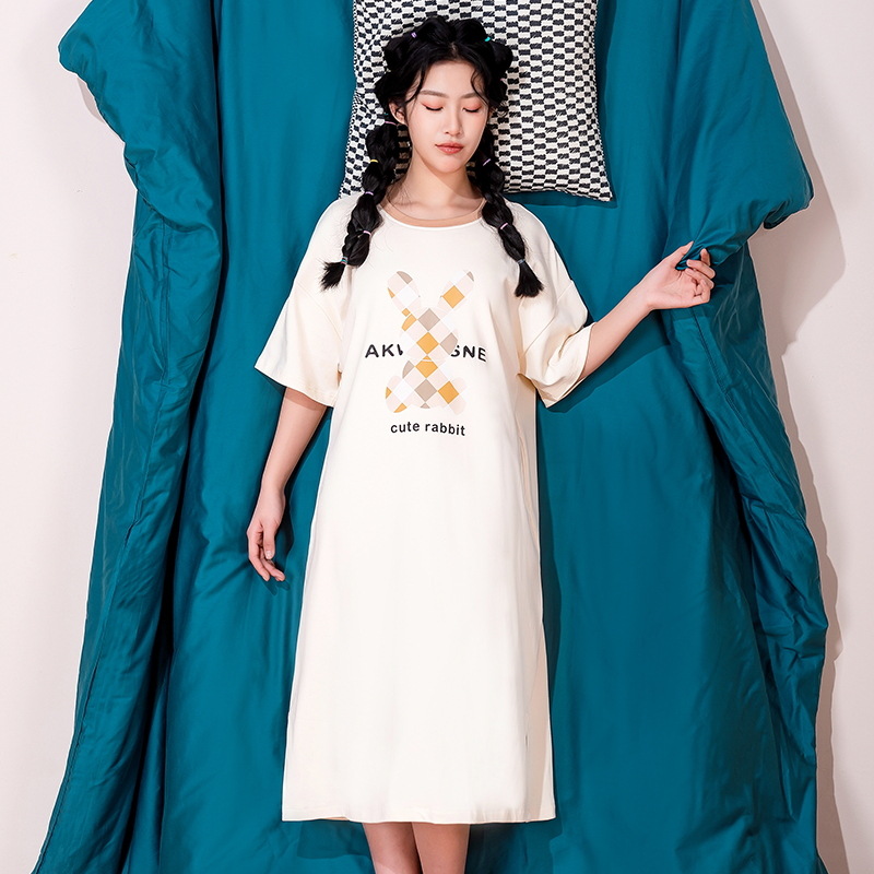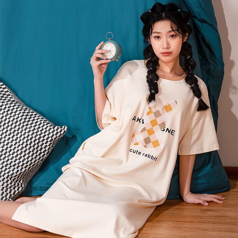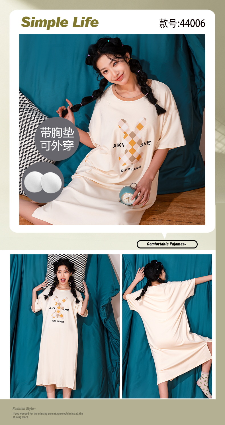 夏薄款睡裙女莫代尔带胸垫短袖可外穿简约中长款睡衣加大码家居服