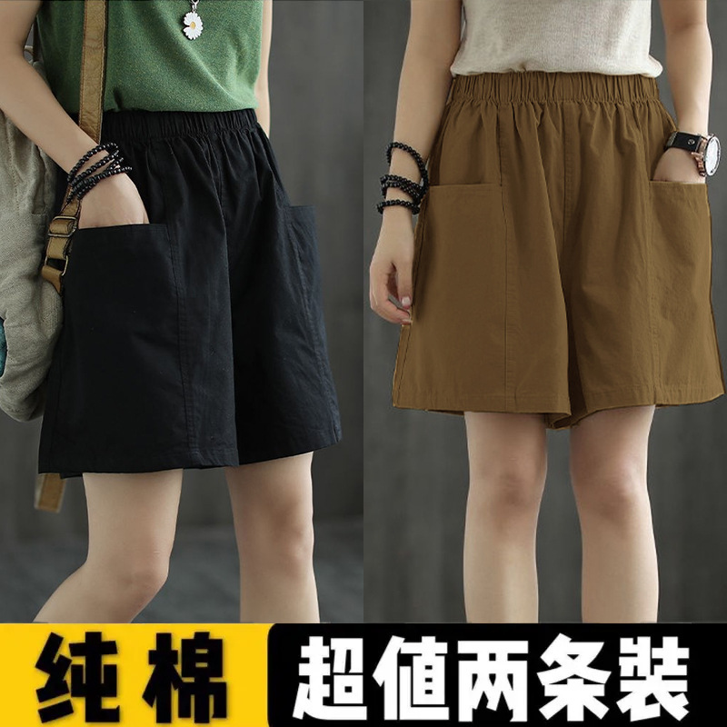 五分裤女阔腿裤夏薄款休闲裤女宽松高腰直筒裤潮ins运动松紧腰