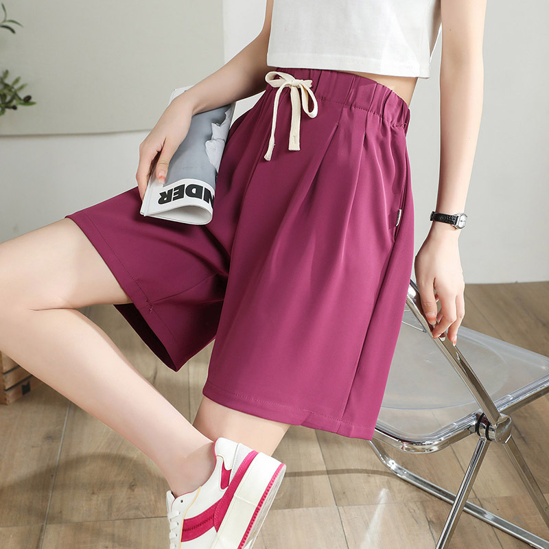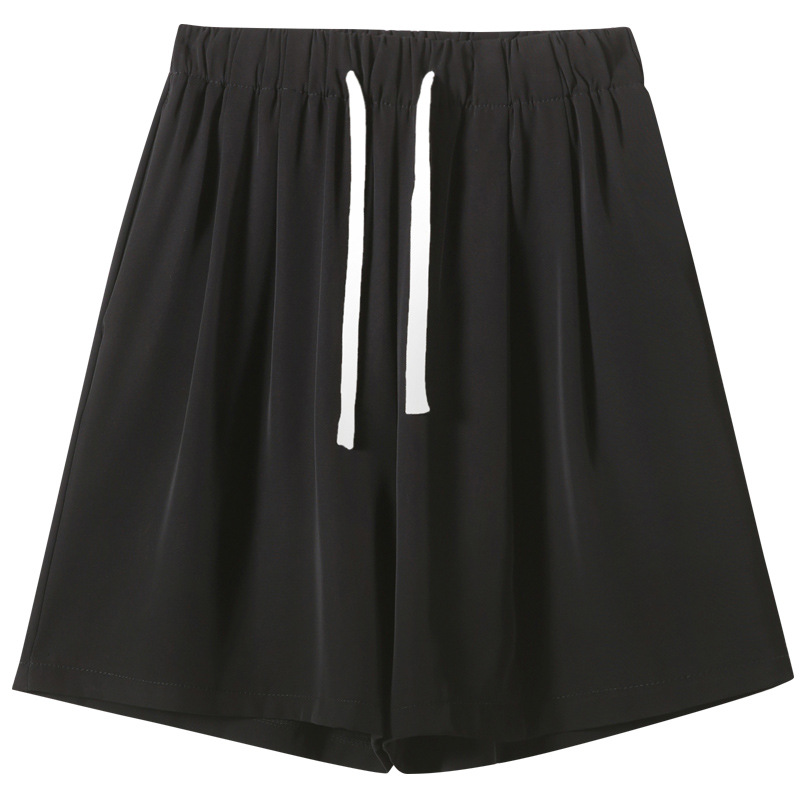 黑色西装短裤女夏季薄款宽松抽绳休闲阔腿高腰直筒a字显瘦裤中裤