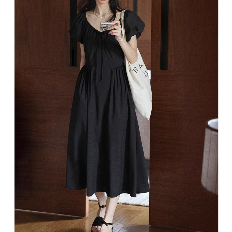 MEIPIN 逛画廊的女孩 抗皱法式泡泡袖v领连衣裙显瘦仙女裙子修身