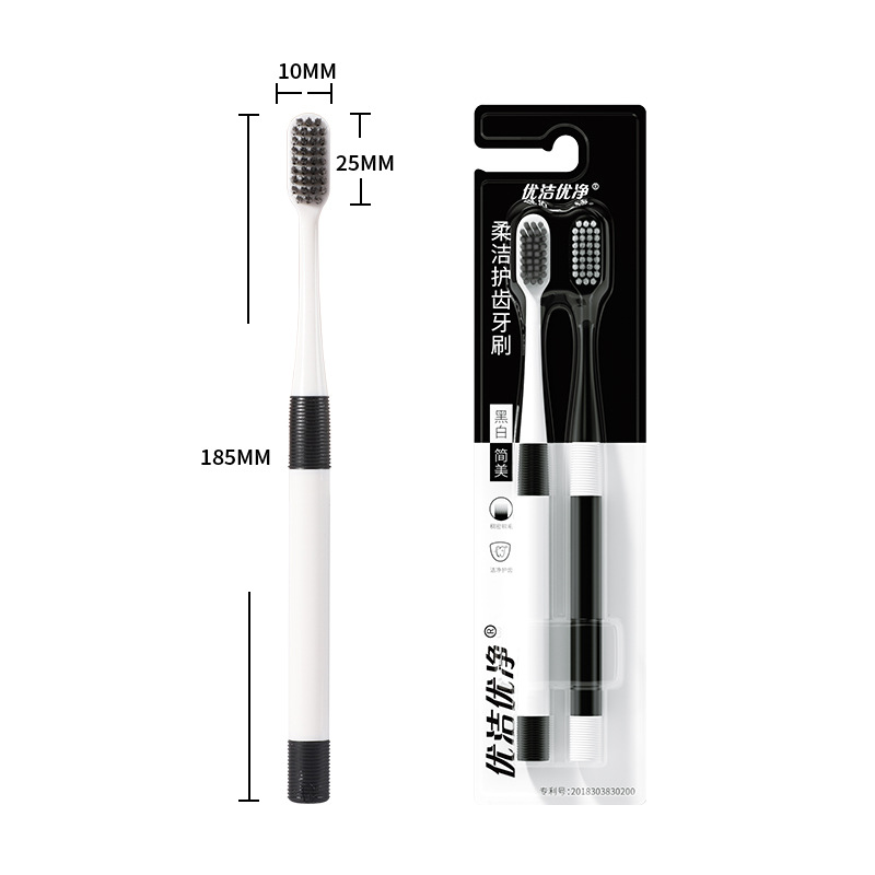 简约黑白小头细丝软毛牙刷双支独立包装情侣家庭装牙刷
