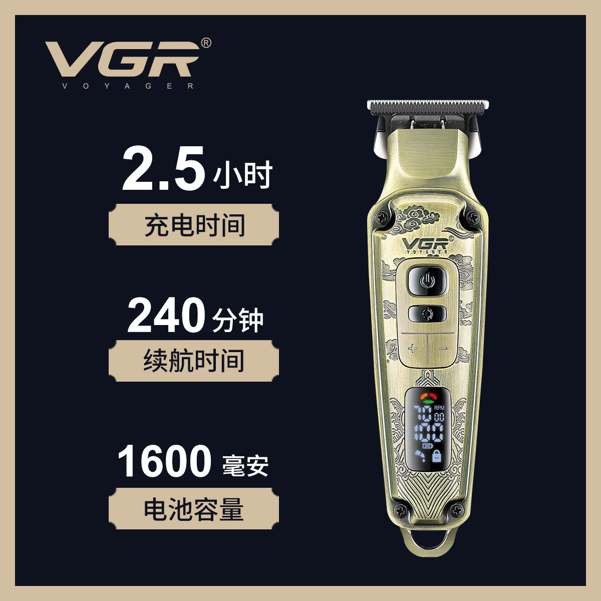 VGR901跨境复古专业理发器液晶数显电推剪雕刻推白发廊油头推子