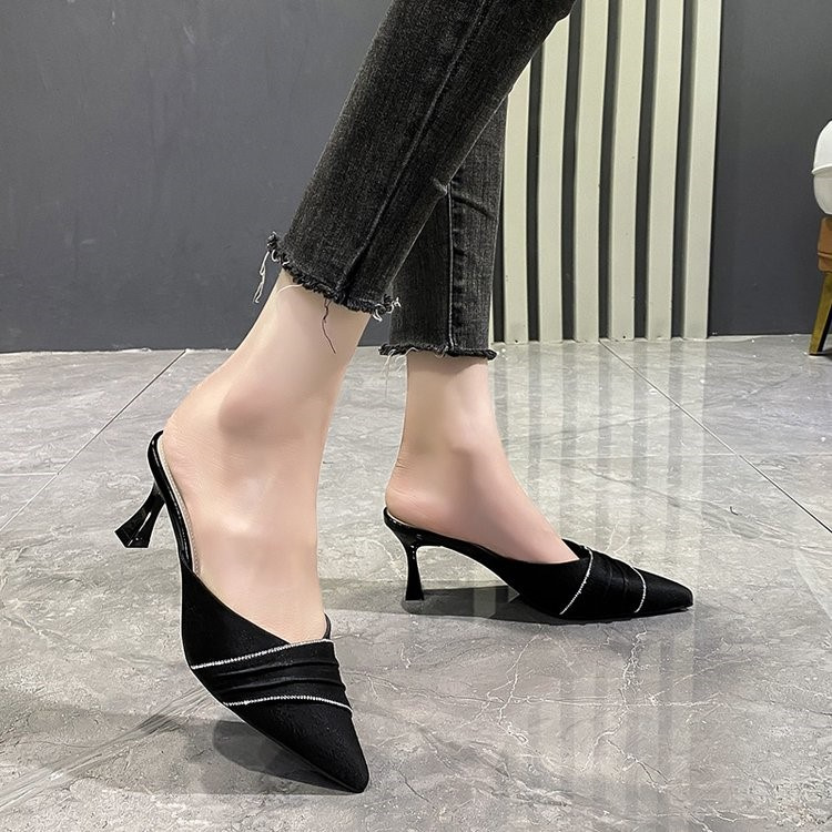 时尚尖头高跟凉拖鞋夏季新款韩版休闲单鞋时尚一脚蹬半拖女鞋