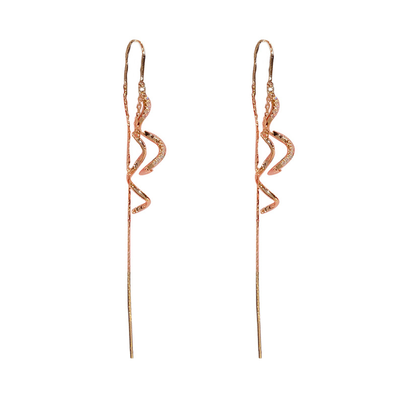 设计感锆石螺旋流苏防丢耳线女韩国时尚个性长款耳坠s925银针耳饰