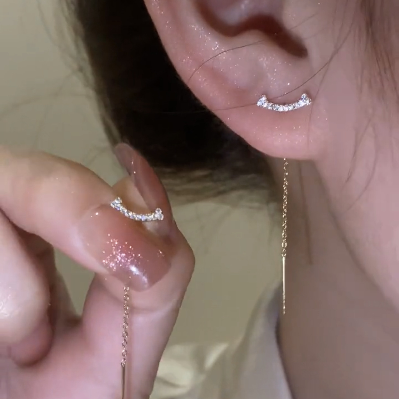 精致热卖微笑耳线高级感满钻锆石流苏耳环女气质长款超仙轻奢耳饰