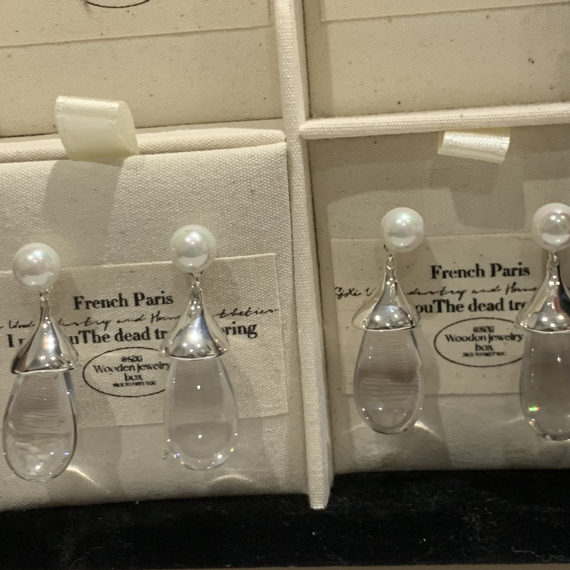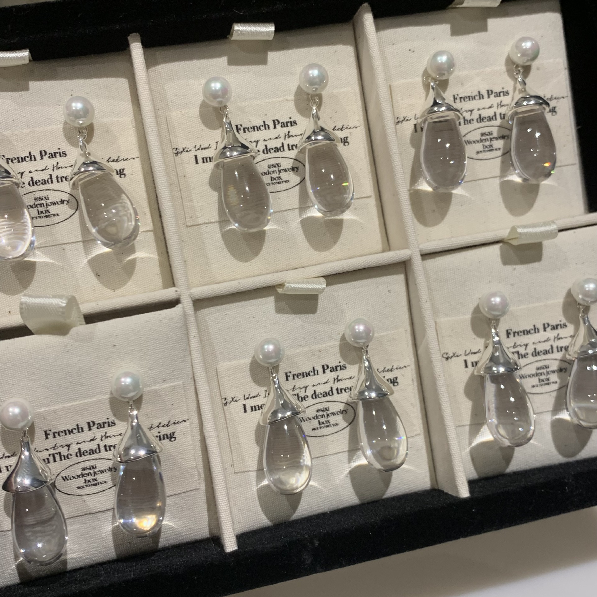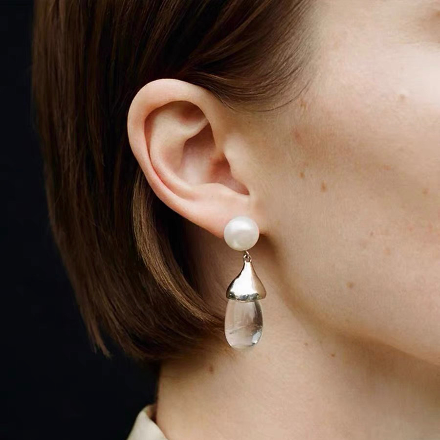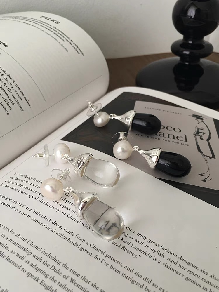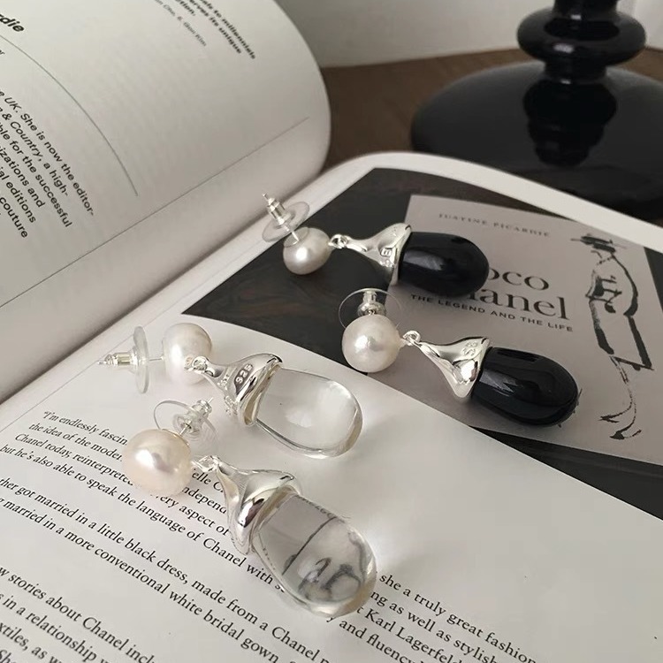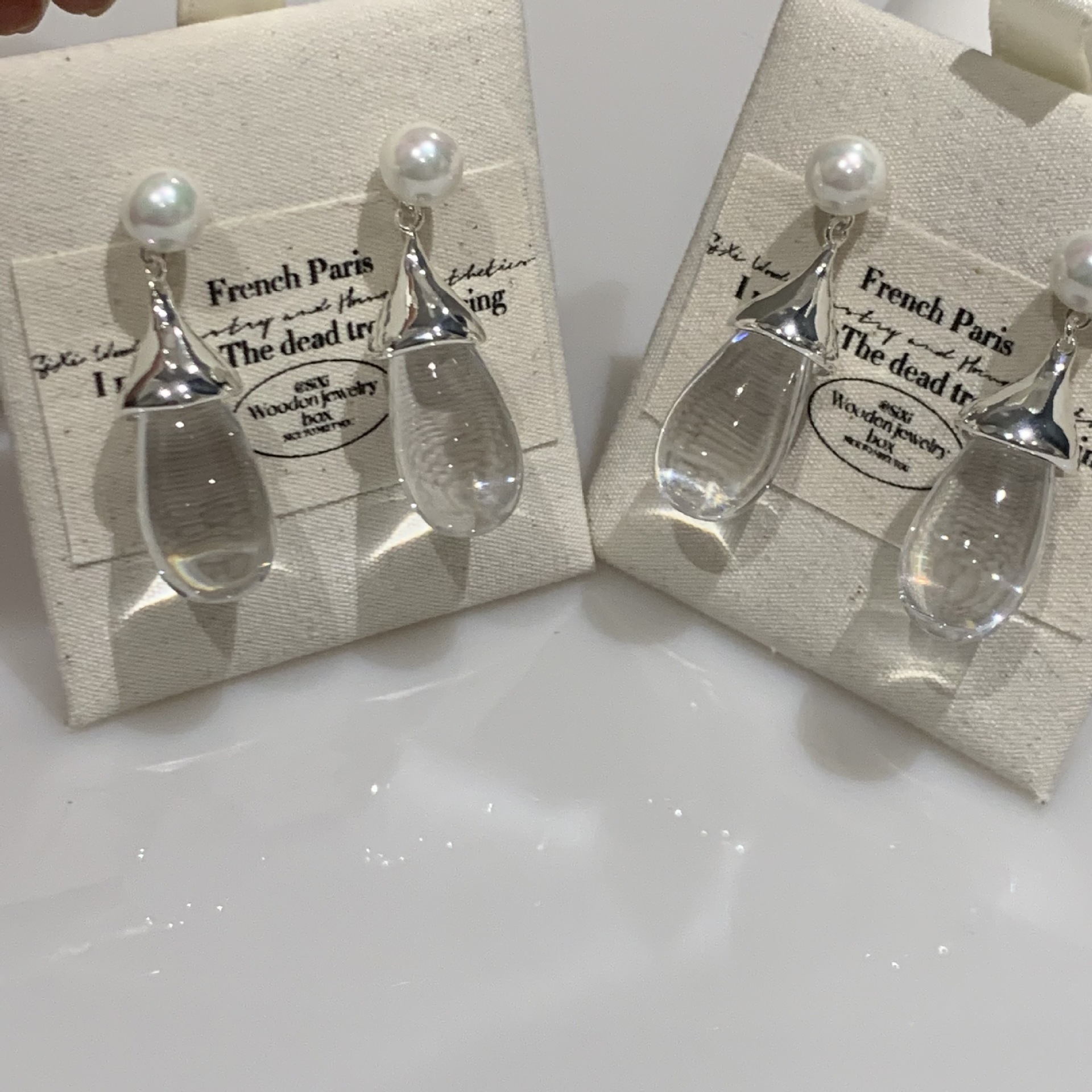 S925银针法式独特珍珠透明水滴耳环高级感时尚小众设计感轻奢圆脸