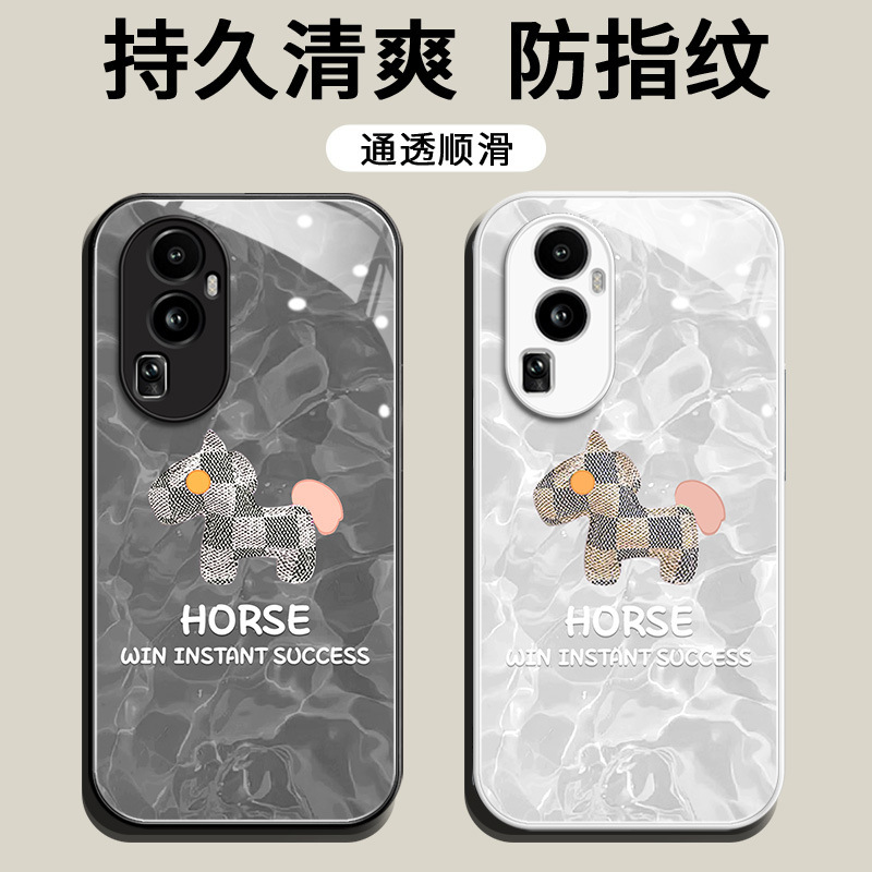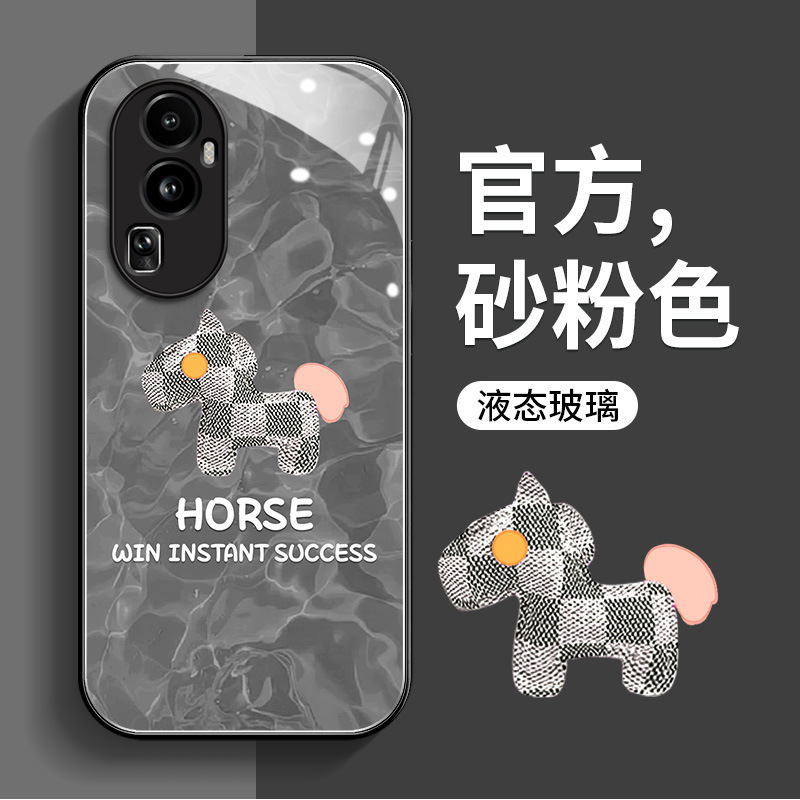 小马适用opporeno10手机壳新款reno9小众创意reno8卡通se玻璃壳