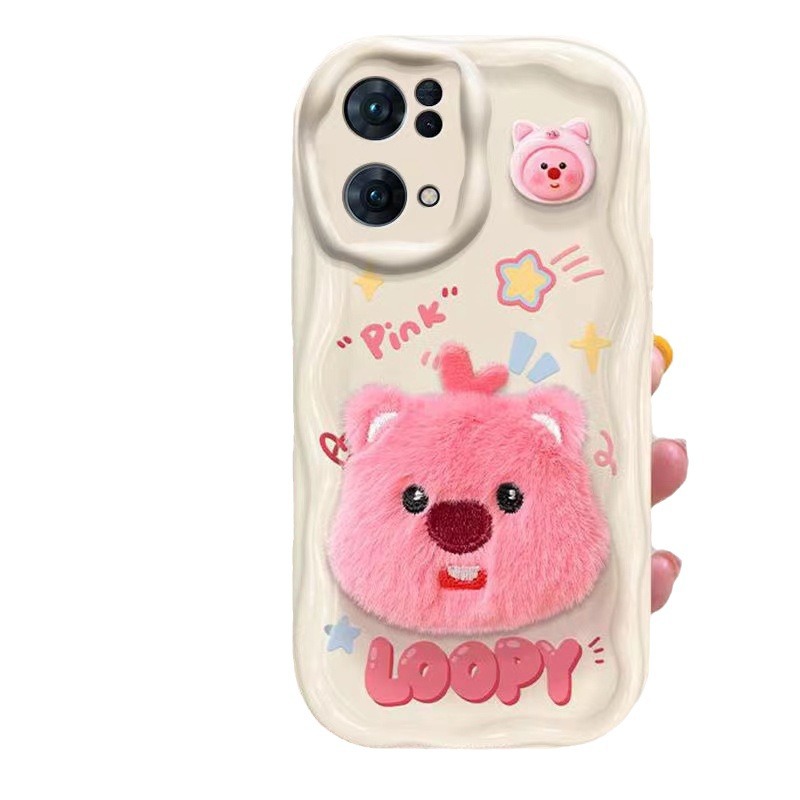 适用于OPPOFindX6手机壳Reno10粉框小粉猪海狸硅胶软壳立体公仔女