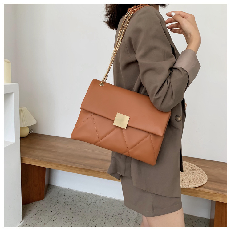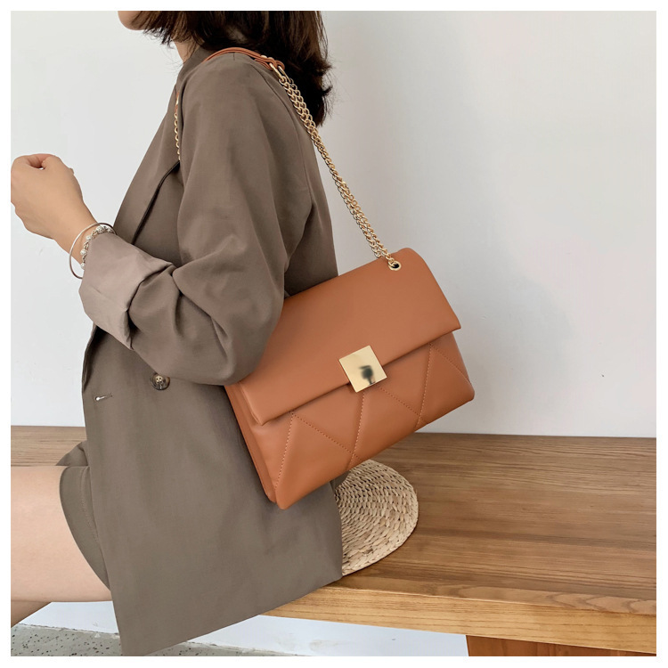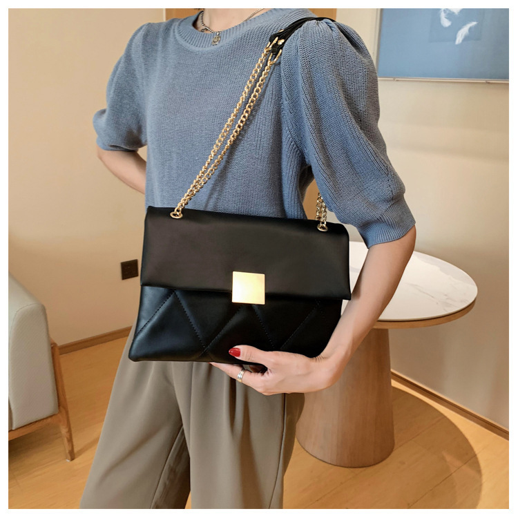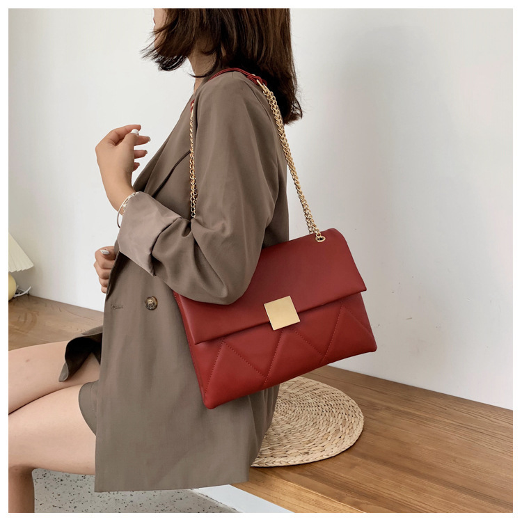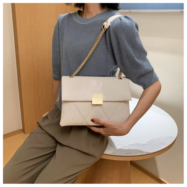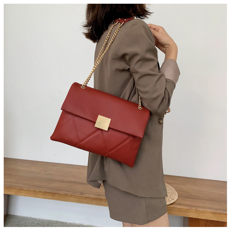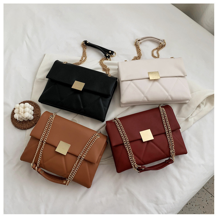 小香风菱格链条包新款锁扣单肩包斜挎小包软皮结婚女包手提包