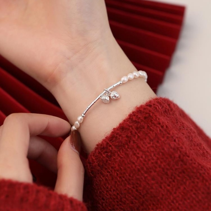 竹节莲蓬花朵手链女高级感气质珍珠S925银手环ins小众百搭手饰潮