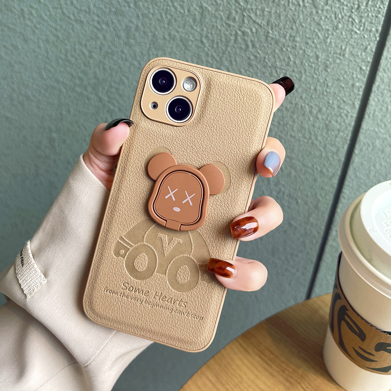 支架小熊适用苹果13promax手机壳新款12小羊皮保护套iPhone11软壳